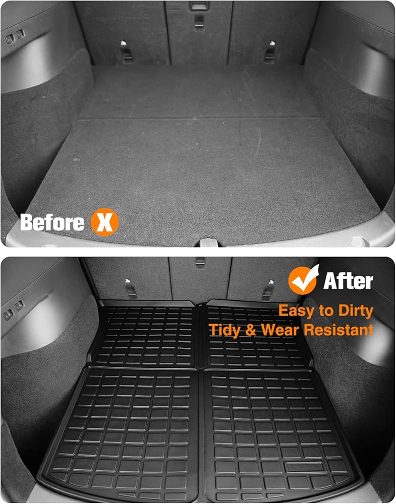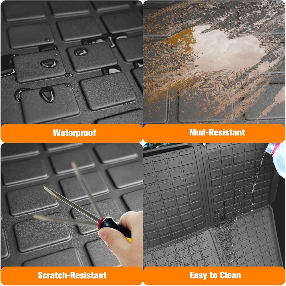 【حماية من جميع الأحوال الجوية】سجادات الأرضية المتينة من طراز تيسلا مناسبة لجميع الأحوال الجوية، مثل المطر والثلج والحرارة وغيرها من الأحوال الجوية القاسية. سواء كنت في تنقلاتك اليومية أو في حفلة أو مع حيواناتك الأليفة، فإن بطانة البضائع هذه السجادة هي الرفيق المثالي على الطريق لتوفر لك الراحة والحماية.
