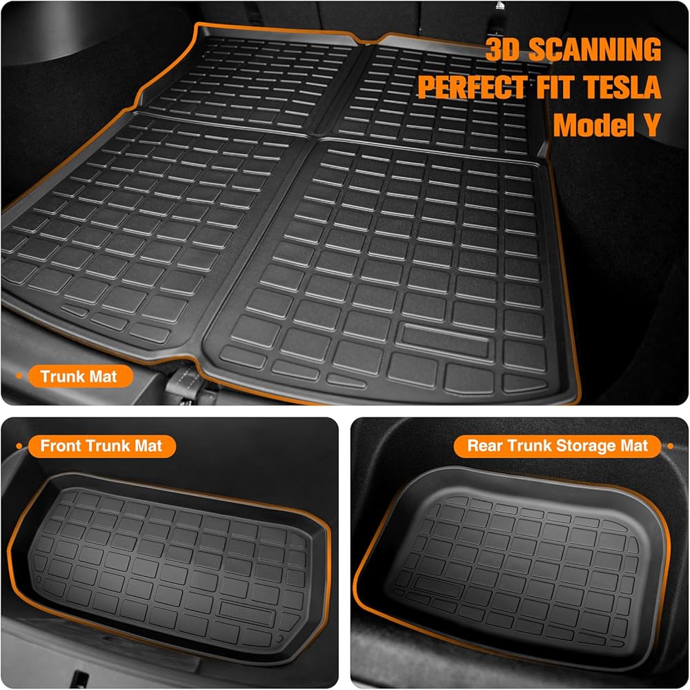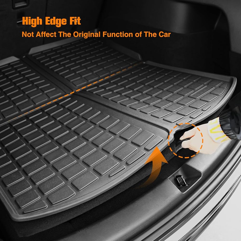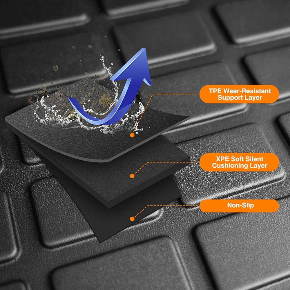 【خامة عالية الجودة】سجادات الأرضية طراز Tesla y مصنوعة من مادة TPE صديقة للبيئة بنسبة 100%، متينة وسهلة التنظيف. وسادة صندوق السيارة عالية الجودة والمرنة غير سامة وعديمة الرائحة ويمكن استخدامها بدون تهوية، مما يوفر بيئة قيادة أكثر أمانًا وراحة لك ولعائلتك.