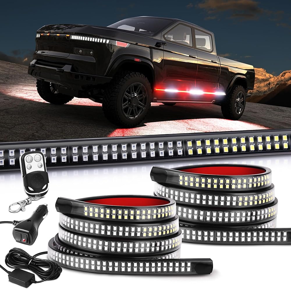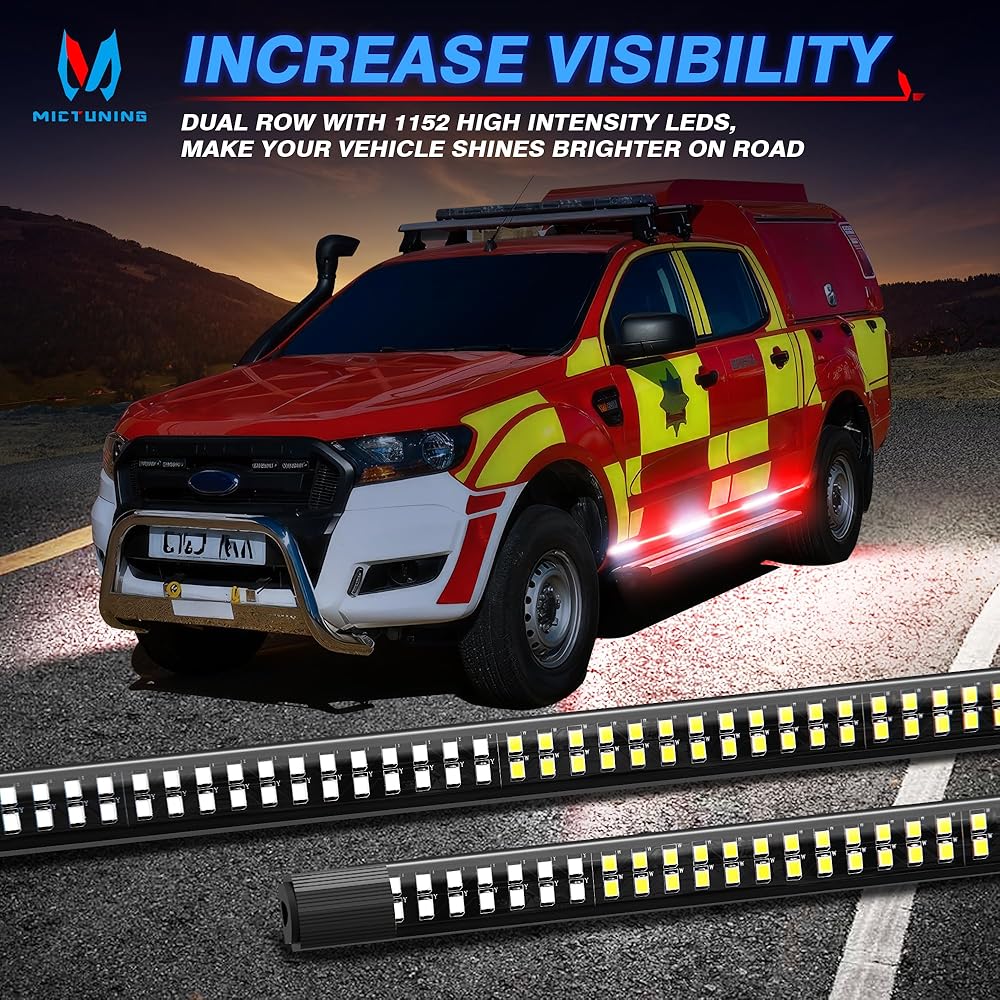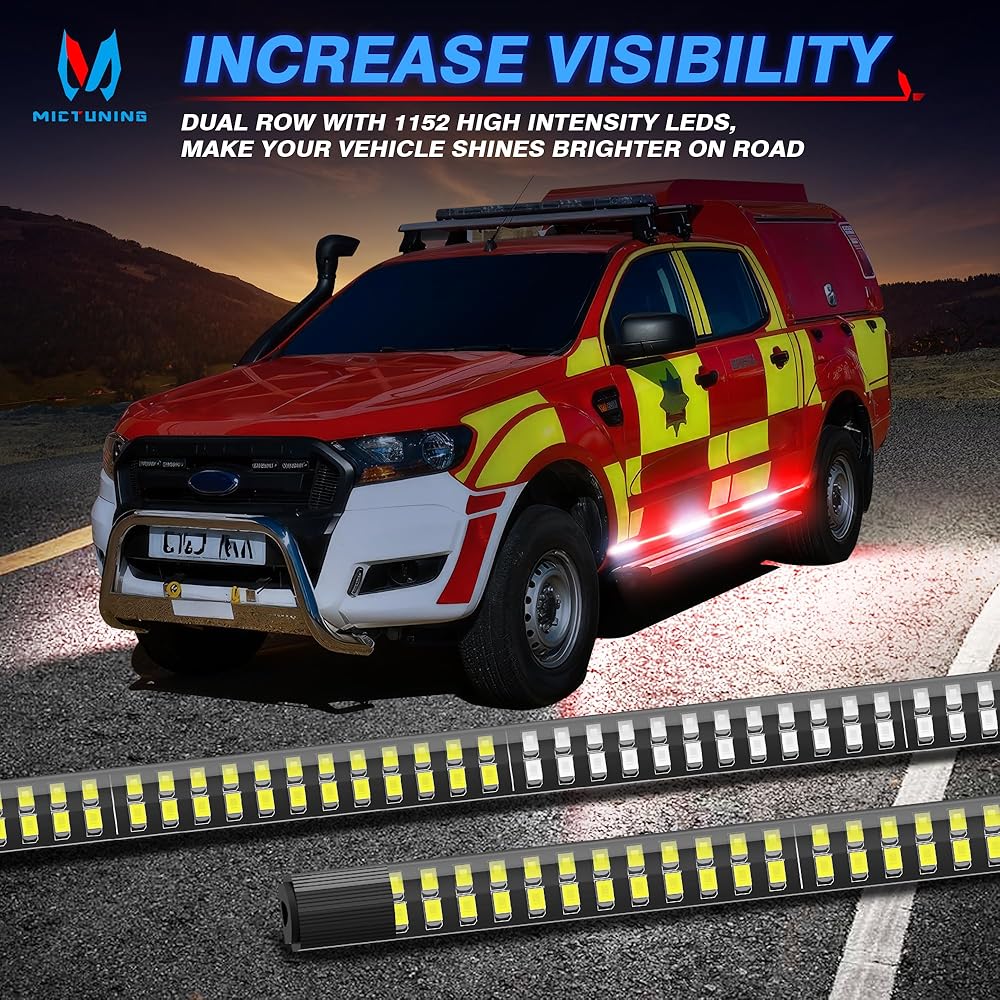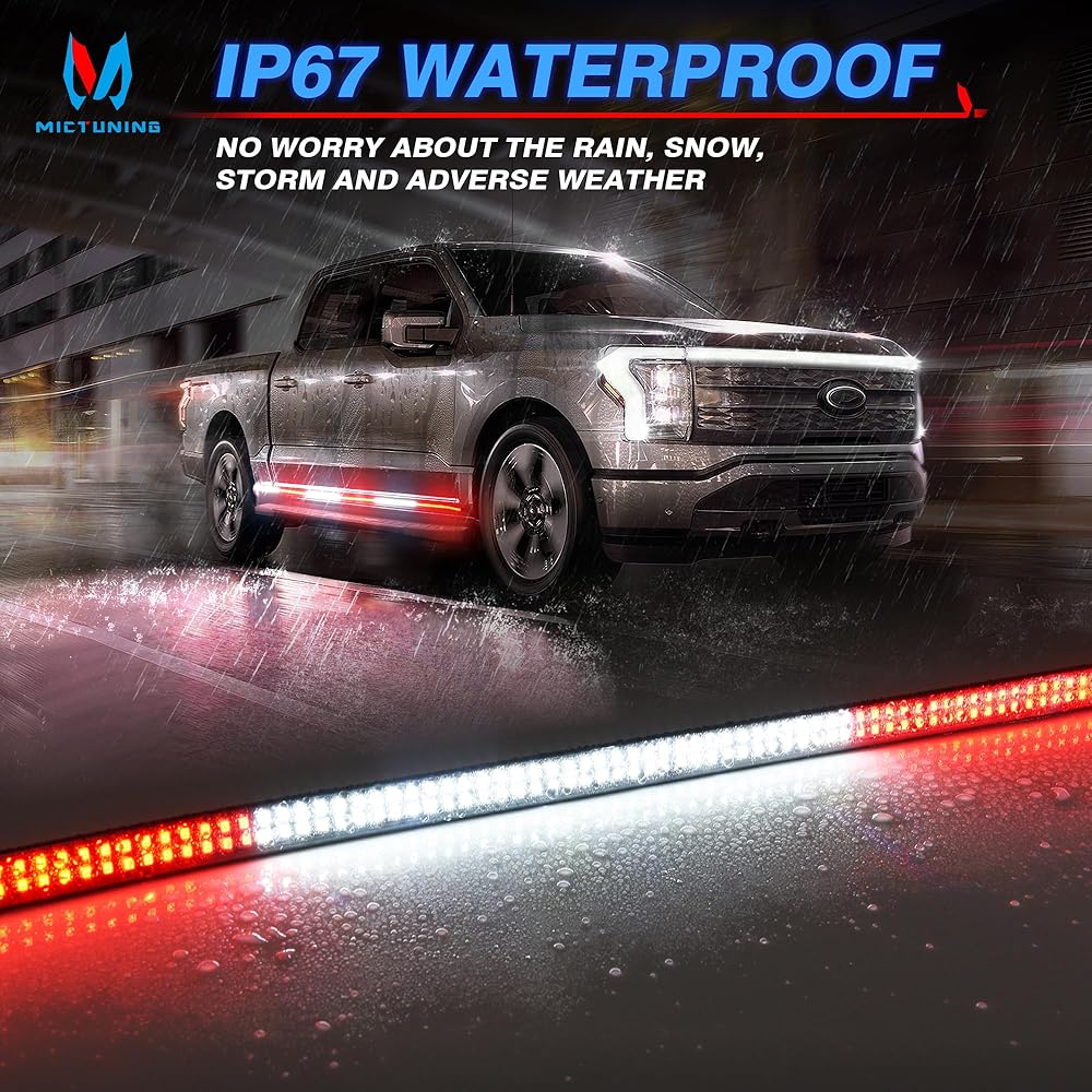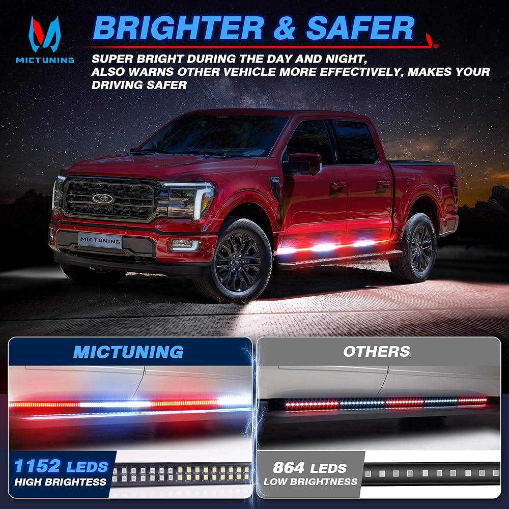 【أكثر إشراقًا وأكثر أمانًا】شريط أضواء LED للوحة الجري مقاس 70 بوصة مزود بـ 1152 مصباح LED عالي السطوع، أكثر وضوحًا في النهار والليل. أكثر سطوعًا من مصابيح الشريط LED القياسية الأخرى 864. إنها تعطي تحذيرًا في حالات الطوارئ وتجذب انتباه السائقين الآخرين بسهولة، وبالتالي تقلل من حوادث المرور وتضمن قيادة أكثر أمانًا.