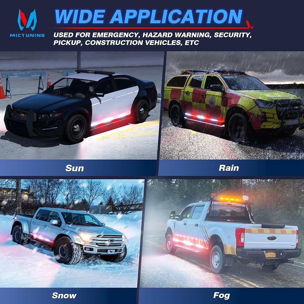【استخدام واسع】تستخدم مصابيح الشريط القوية في حالات الطوارئ على نطاق واسع للسائقين في وقت متأخر من الليل، وواجبات المستجيب الأول، وعمال المدينة، والاستجابة لحالات الطوارئ، والتحذير من المخاطر، وإنفاذ القانون، ومركبات الطوارئ، والالتقاط، وشاحنات السحب، ومركبات البناء، والشرطة، وEMS، والأمن، كاسحة الثلج، عمال البريد، الخ.