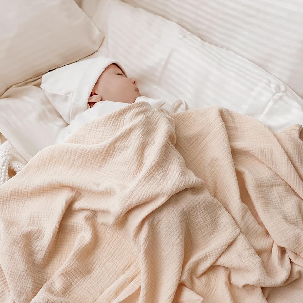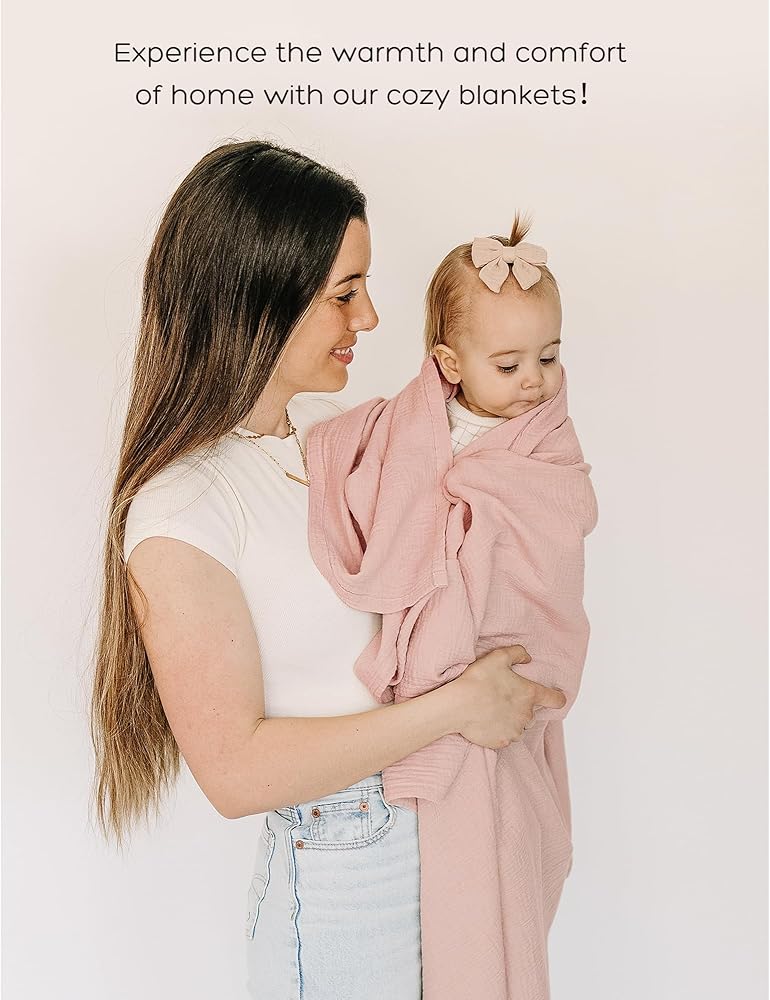 Premium Comfort —— Crafted from premium, breathable, and soft muslin materials, our swaddle blankets wrap your baby in pure comfort, ensuring they stay snug and cozy without overheating.