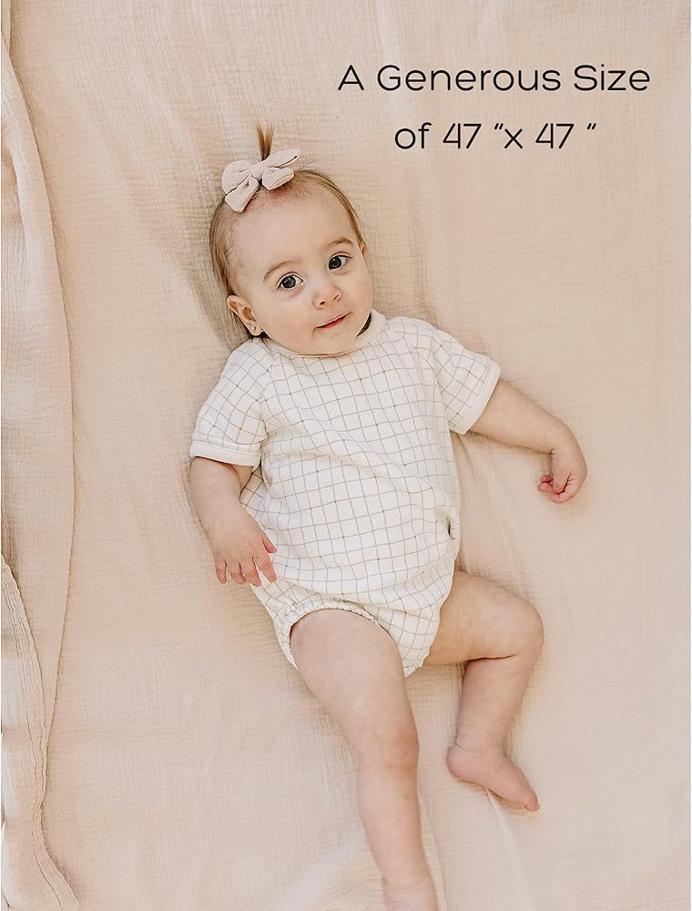 Spacious & Versatile: With a generous size of 47 x 47 inches, the muslin swaddle blankets provide ample room for your little one to feel snug and secure. Whether used for swaddling, nursing covers, stroller blankets, or tummy time mats, these receiving blankets adapt to multiple uses, providing versatility to suit your parenting needs.