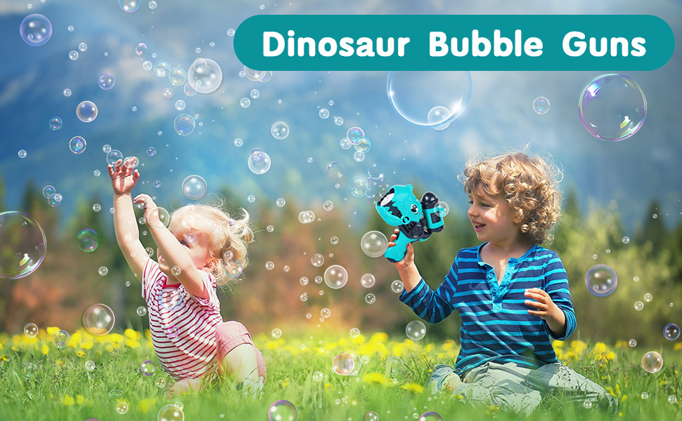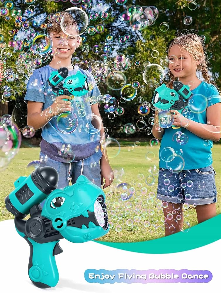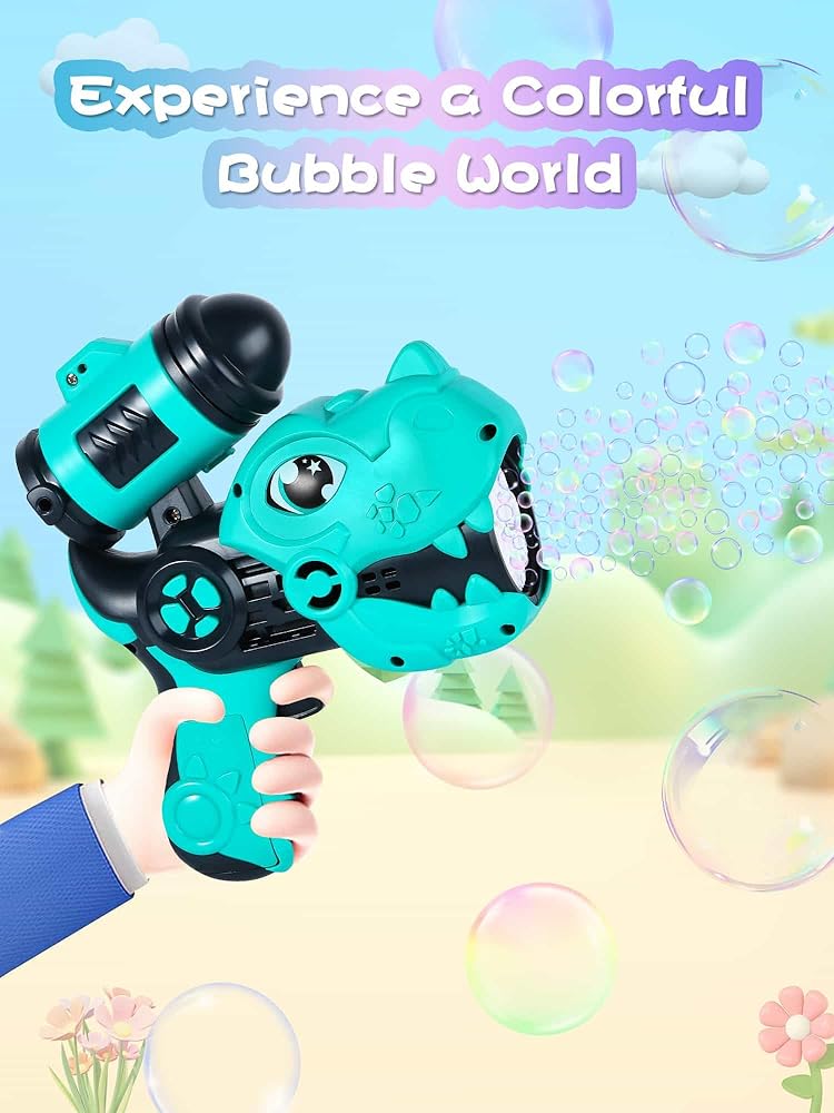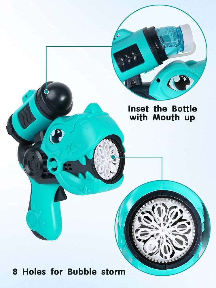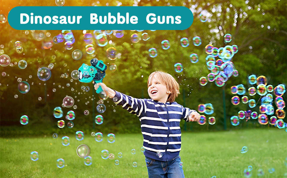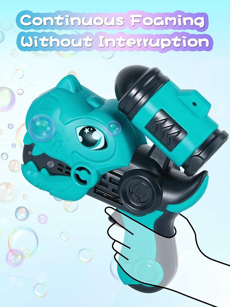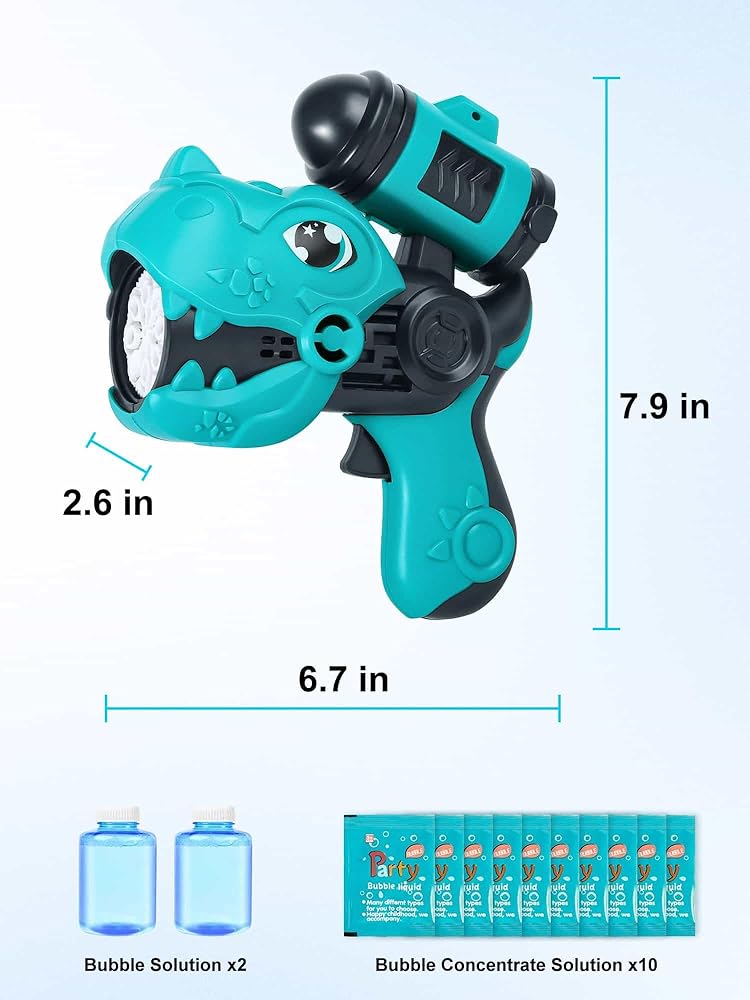 مسدس فقاعات الديناصور - مسدس الفقاعات سهل الاستخدام وينتج الكثير من الفقاعات مع كل سحبة للزناد، مما يخلق تجربة فقاعات سحرية.