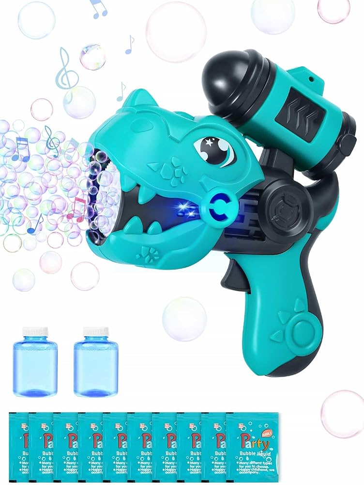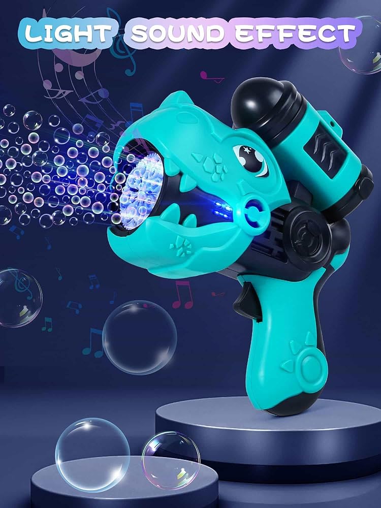 مسدس فقاعات الديناصور للأطفال، صانع منفاخ آلة الفقاعات مع أضواء وأصوات، مسدسات فقاعات للأطفال الصغار من 1 إلى 3 سنوات، هدايا ألعاب صيفية خارجية للأولاد والبنات