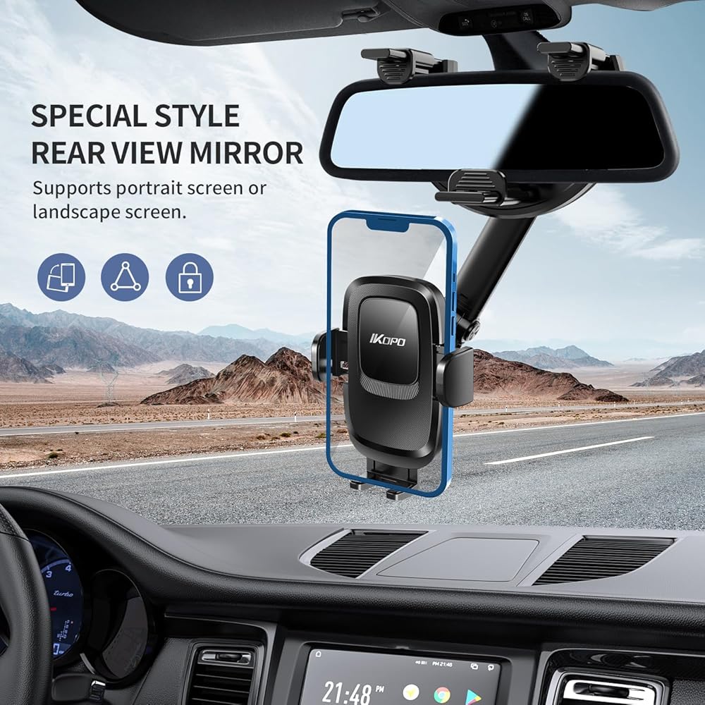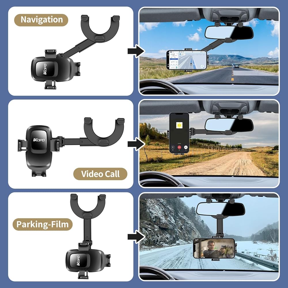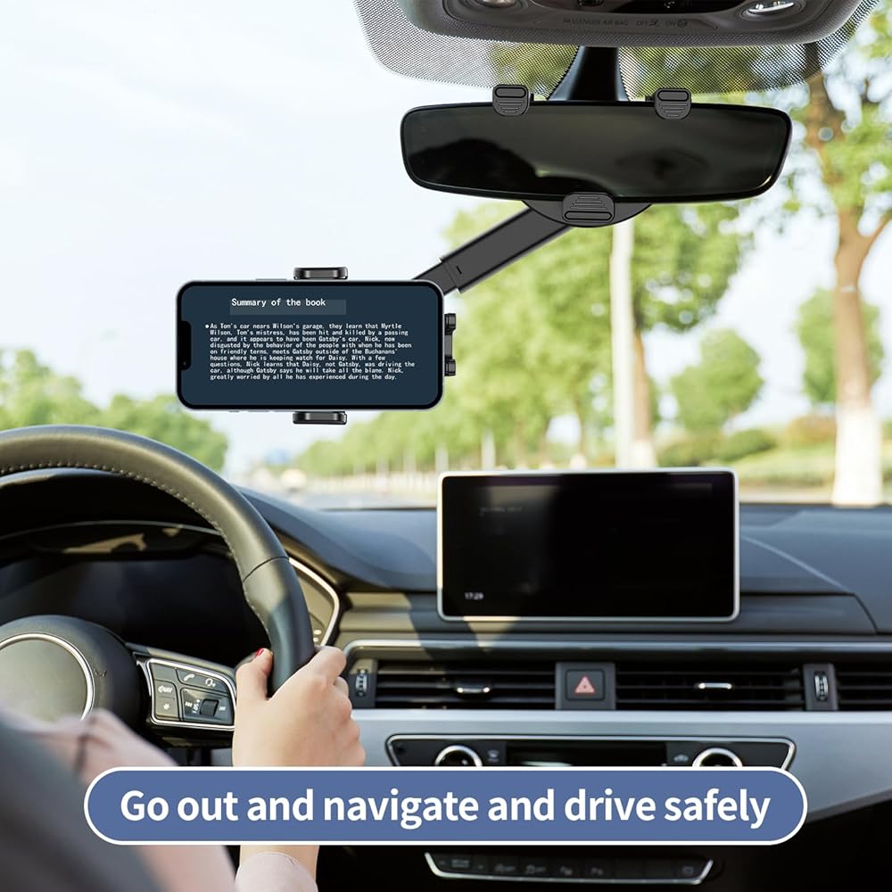 【سهلة الاستخدام ومواد عالية الجودة】قم بتثبيت حامل الهاتف المرآة على مرآة الرؤية الخلفية، وقم بتدويره أو تمديده حسب الحاجة، يمكنك وضع الهاتف أو تحريره بيد واحدة أثناء القيادة، وضبط الهاتف بسهولة على اتجاه أفقي أو شاشة صورة. يتمتع السائق الرئيسي بملاحة مريحة، والاستماع إلى الموسيقى، ونظام تحديد المواقع العالمي (GPS)، وإجراء المكالمات، ويمكن لمساعد الطيار مشاهدة مقاطع الفيديو، ومكالمات الفيديو. حامل هاتف السيارة مصنوع من مادة ABS عالية الجودة، متينة، سهلة الطي.