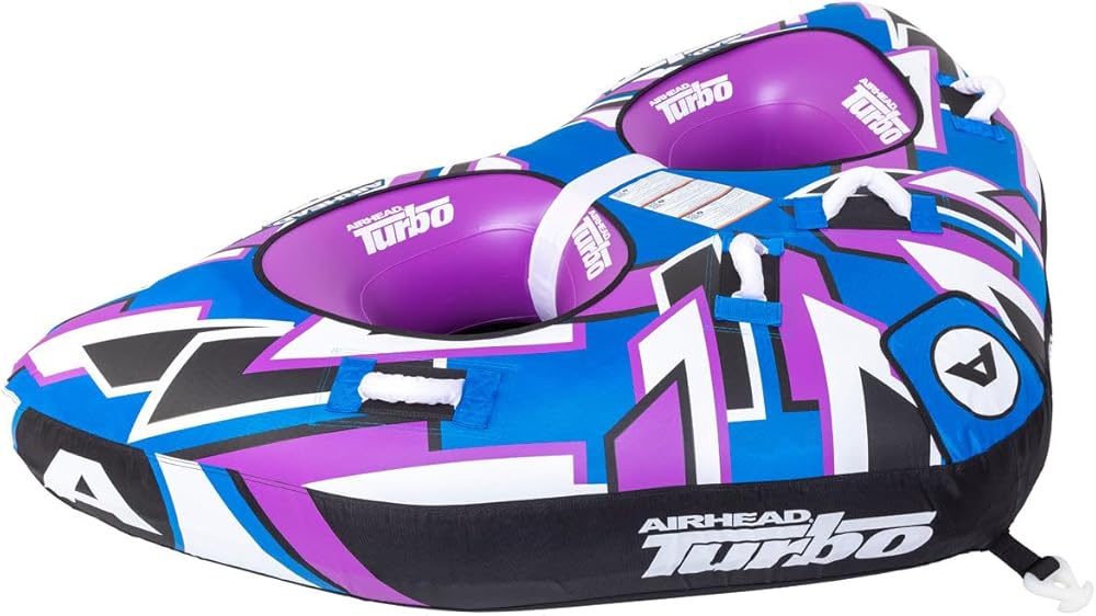 TURBO BLAST is not only a head turner, it is one hot riding tube! The 86" x 58" (deflated) double open top tube has a rugged double stitched 840-denier nylon cover with 2 self-draining floor vents. The 30-gauge virgin PVC bladder is equipped with a Speed Safety Valve, the ultimate in inflating and deflating convenience. Four deluxe handles with neoprene knuckle guards ensure a comfortable grip. You'll really appreciate the heavy-duty Kwik-Connect every time you hook-up your tow rope.