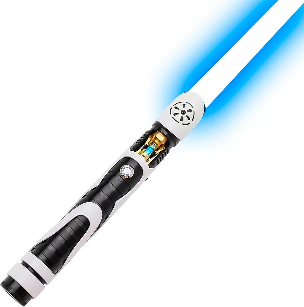【تجربة قتالية حقيقية】: سيف FX Light مدمج في 12 تأثيرات ضوئية ملونة RGB و27 تأثيرًا صوتيًا. يمكن أن يتغير الصوت بإيماءة التأرجح عند تأرجح السيف الخفيف