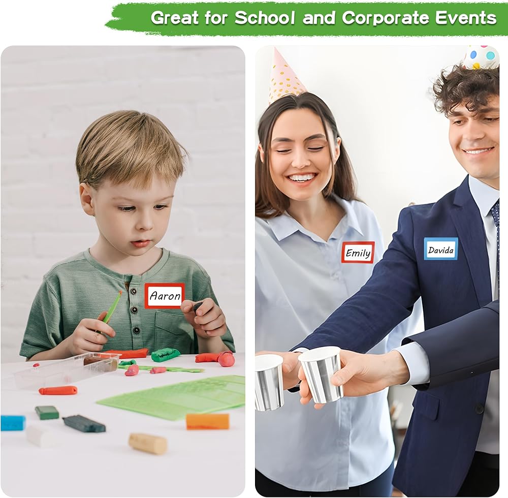 • مساحة كتابة كبيرة: توفر كل ملصقات الملصقات مساحة واسعة لكتابة الأسماء والمعلومات الإضافية مثل عناوين الشركة أو الحقائق الممتعة، مع سطح كتابة ناعم متوافق مع معظم الأقلام وأقلام التحديد لوضع علامات سريعة ومقاومة للتلطخ.