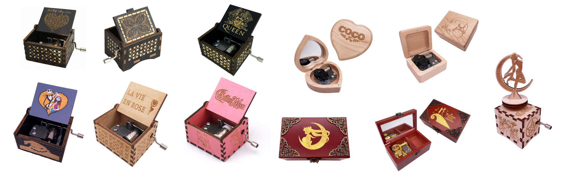♥ اللحن: LA VIE EN ROSE. يتميز صندوق الموسيقى هذا بجزء خارجي خشبي مصنوع يدويًا مع منحوتات رائعة كما تظهر الصورة