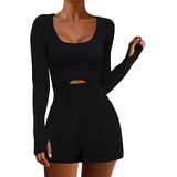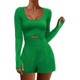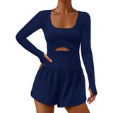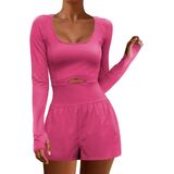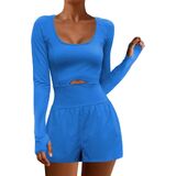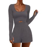 Women's Yoga Jumpsuit Shorts Long Sleeve Scoop Neck Cutout Workout Romper Gym Playsuit