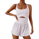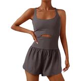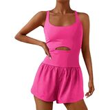 • Design: Women sexy work out romper, athletic running jumpsuit, sleeveless crisscross back onepiece, summer high waist shorts overall, solid color yoga exercise clothes, bodycon stretch top and loose wide leg shorts one piece, cut out suspender playsuit,movement square neck bodysuit.