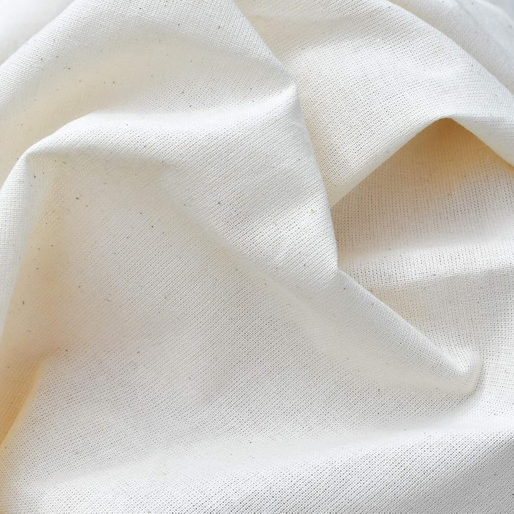 -100% natural Muslin unbleached Cotton with a plain weave and medium weight -63 Inches wide x 3 Yard length (4.5 oz./sq yard) -Superior quality fabric has a smooth finish with a soft touch to feel -Can wash in a low setting (no bleach) and dried, but to retain quality it is best to hand wash and air dry -MULTIPLES USES: Best choice for fashion designers and quilters, backing, backdrops, embroidery, dressmaker fittings, curtains, cushions, draping, crafting, templates for apparel and upholstery jobs, has a natural light drape and stiffness, drapery lining, aprons, sheets quilting, wall covers, costume making, jewelry bags, sashes -This Muslin fabric is affordable and with a generous width that can meet so many of your needs!