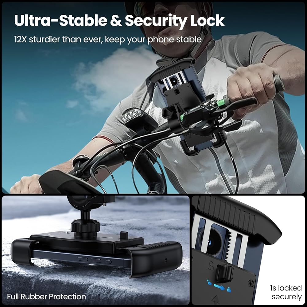 Motorcycle Phone Mount, Bike Phone Holder [Ultra-Stable & Security Lock] Phone Holder for Bike 360° Rotate, Motorcycle Phone Holder Suitable for iPhone 15/14/13, Samsung S24/S23 More from 4.5-7.3 inches