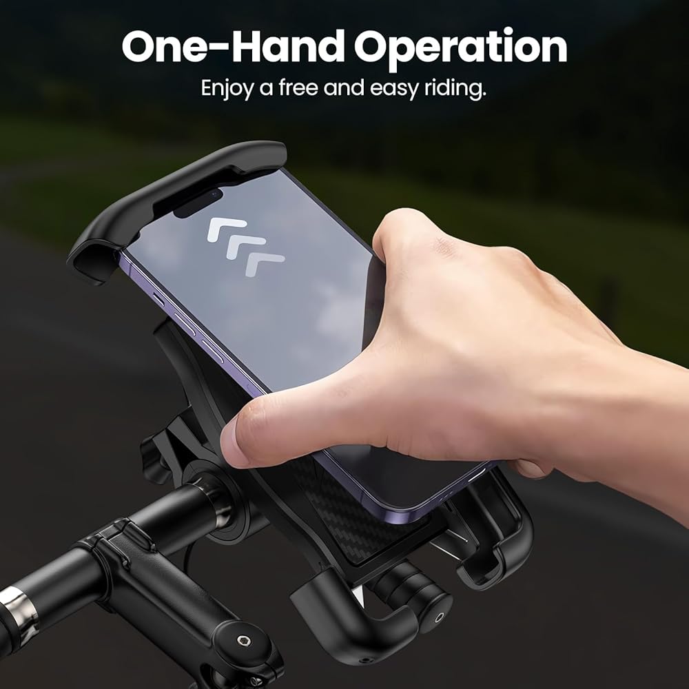 🚴 Mount the phone on bicycle phone holder with one hand, then release your hand and the phone will be clamped automatically.