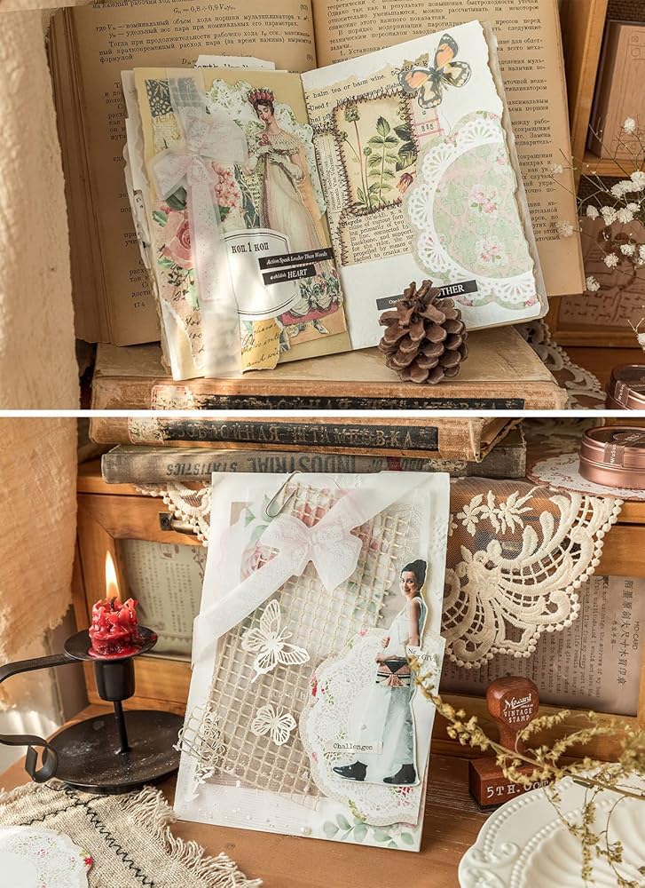 ورق قصاصات من الدانتيل على شكل زهرة، 186 قطعة من لوازم المجلات غير المرغوب فيها العتيقة، والحرف الفنية، ومواد سجل القصاصات، ومجموعة يوميات زخرفية، وصناعة البطاقات، والدانتيل المقصوص، ومخططات جمالية يمكنك صنعها بنفسك