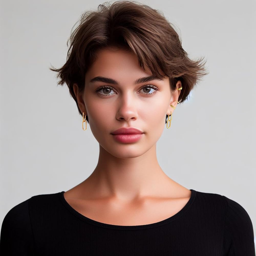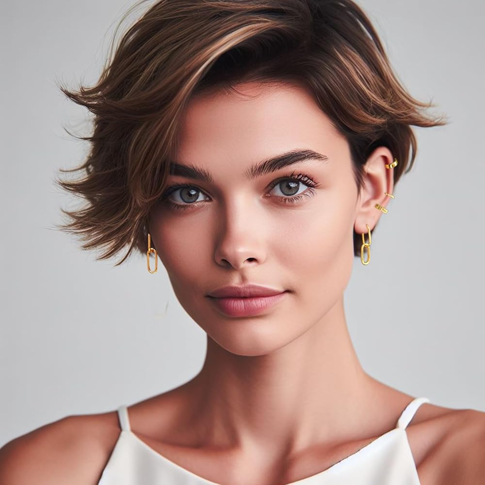 • أبعاد رقيقة وخفيفة الوزن:** مع أقراط وصلات قابلة للتحويل بطول 2.8 سم وحجم سوار الأذن 1.1 سم، هذه القطع خفيفة الوزن ورائعة. مثالية للارتداء لفترات طويلة، فهي تضيف لمسة ساحرة لمظهرك العام.