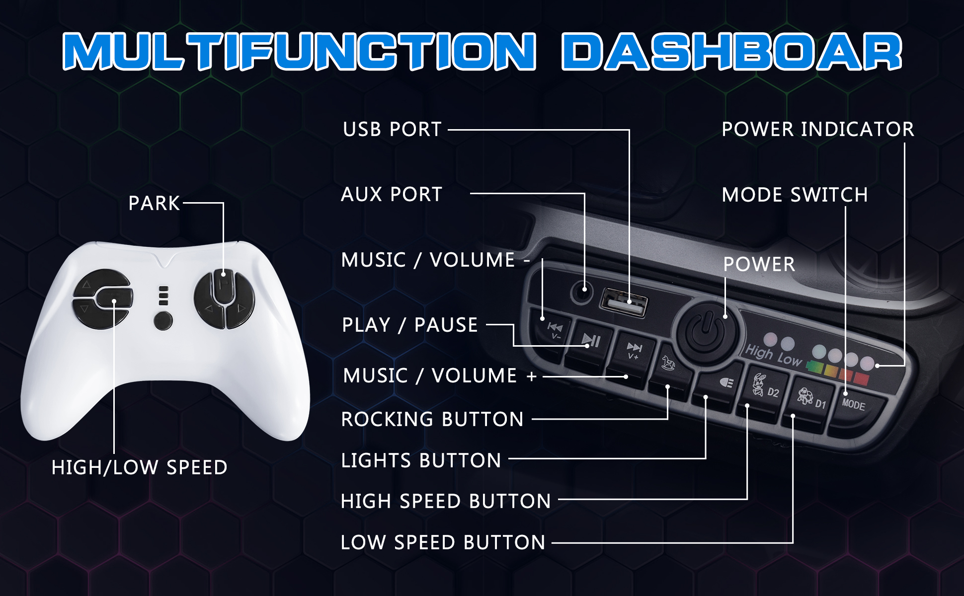 【جمع الأطفال معًا】بالنسبة للشباب المبكر الذين لا يستطيعون الانتظار للقيادة بأنفسهم، يمكن أن تكون السيارة التي تعمل بالبطارية 12 فولت فرصة كبيرة لكل تفاصيلها: المصابيح الأمامية، والقرن وأصوات المحرك، وتسارع الدواسة الواقعي، والتوجيه السلس. بالإضافة إلى الأغاني المدمجة، تدعم سيارة الركوب هذه USB أو البلوتوث لتشغيل الأغاني التي يحبها الأطفال.