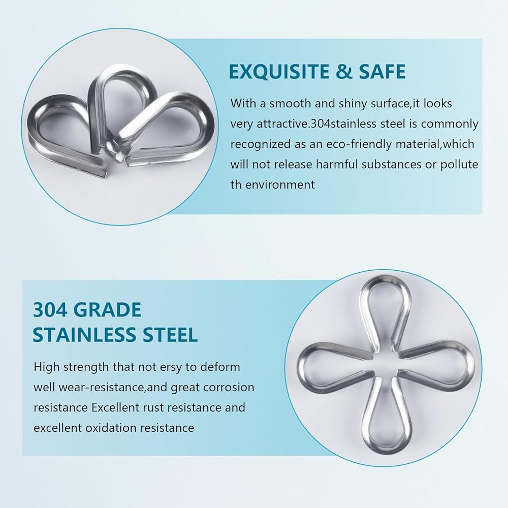 ✮ The wire cable thimble is made of high-quality stainless steel, which is corrosion-resistant, rust-resistant, strong and durable.