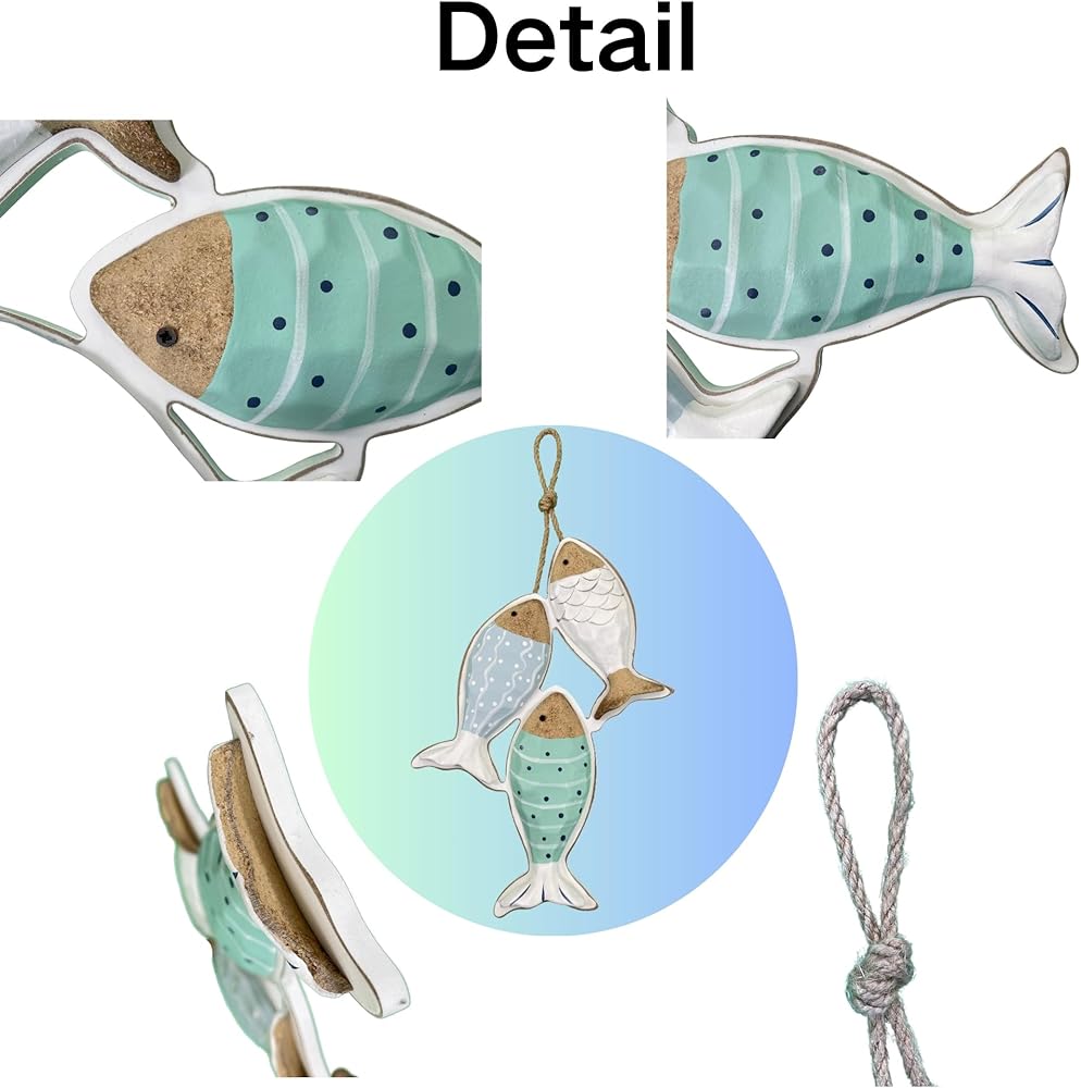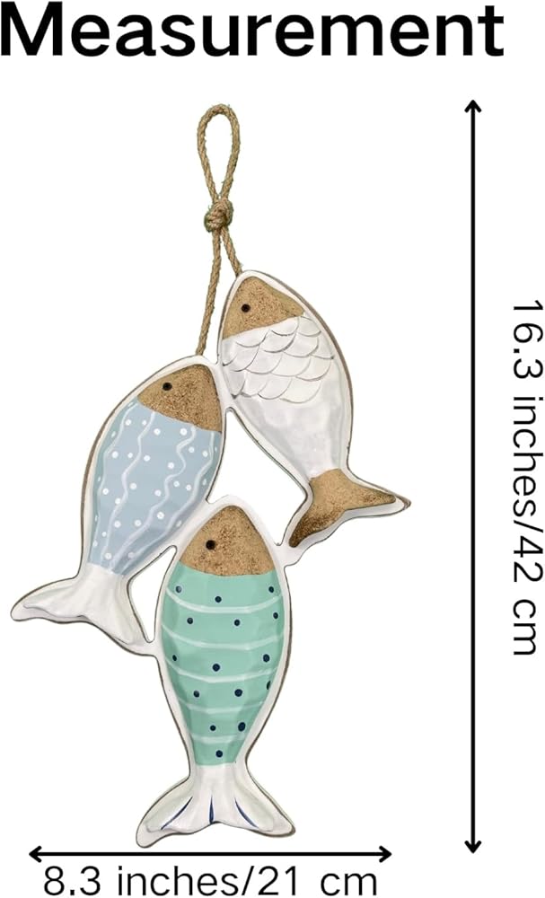 【Fish Measurement】This item contains 2 fish, the size of each fish is 8(L)*1.9(W)*1.1(H)".it is perfect for decorating boat, ship, lake house, pub, shop, restaurant, kitchen, bathroom, office, etc.
