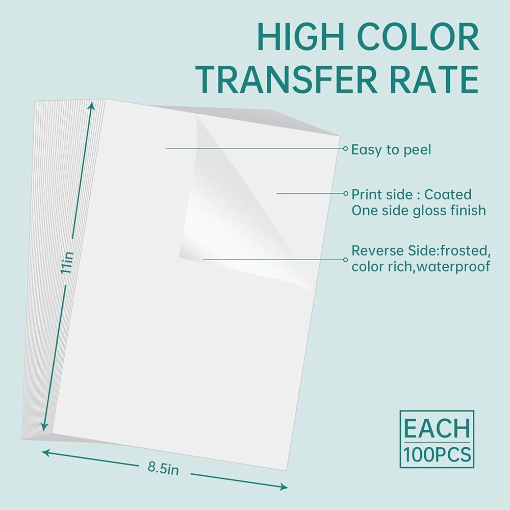 DTF Transfer Film, 100 Sheets PET Transfer Paper, A4 8.5" x 11.5" Matte