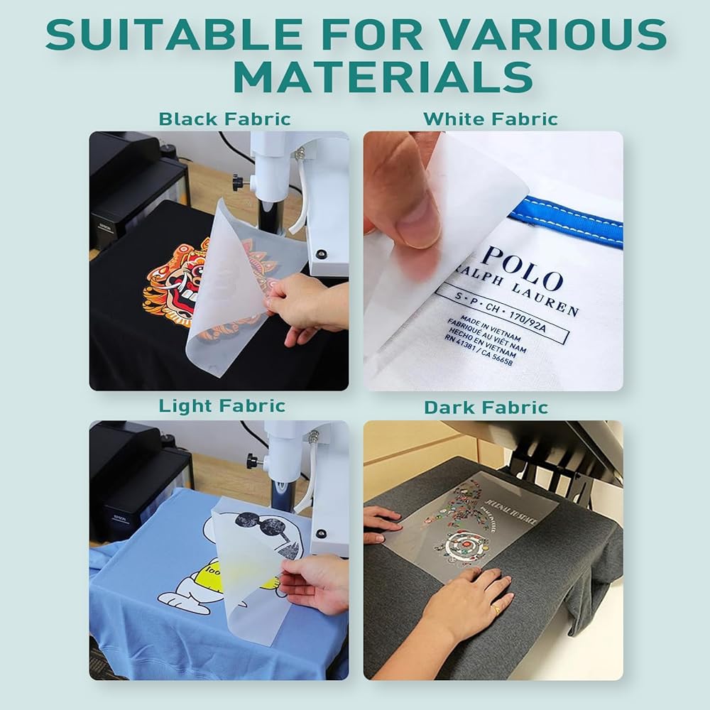 Rest assured, each sheet of our DTF transfer film for inkjet printer undergoes rigorous testing to meet the highest standards of quality and consistency. Double-sided, thick, and flawlessly coated, it guarantees a flawless printing experience, every single time.