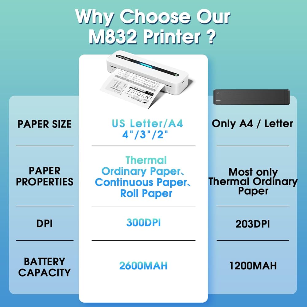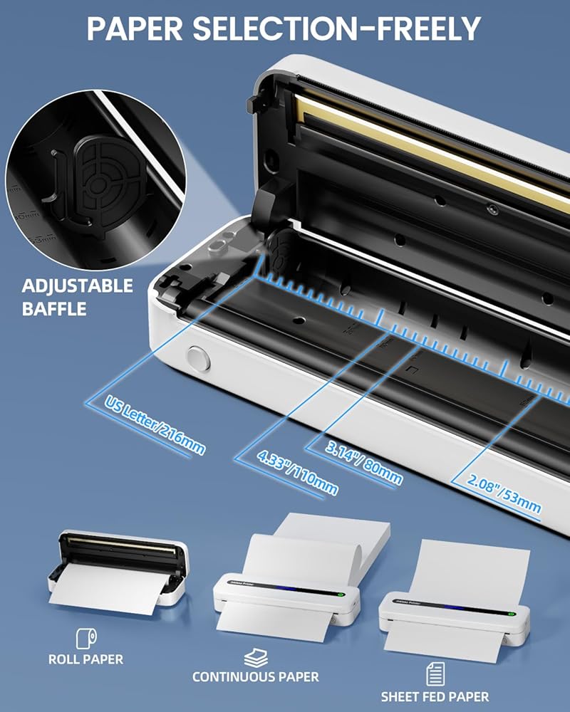 اختيار الورق مجانًا: طابعة لاسلكية مدمجة ASprink M832 - تدعم أحجام Letter وA4 و4.33 و3.14 و2.08 بوصة. بالإضافة إلى الورق الحراري الملفوف والمسطح والمستمر والورق المستمر والمفرد. التكيف مع الطباعة المتنوعة الخاصة بك الاحتياجات.