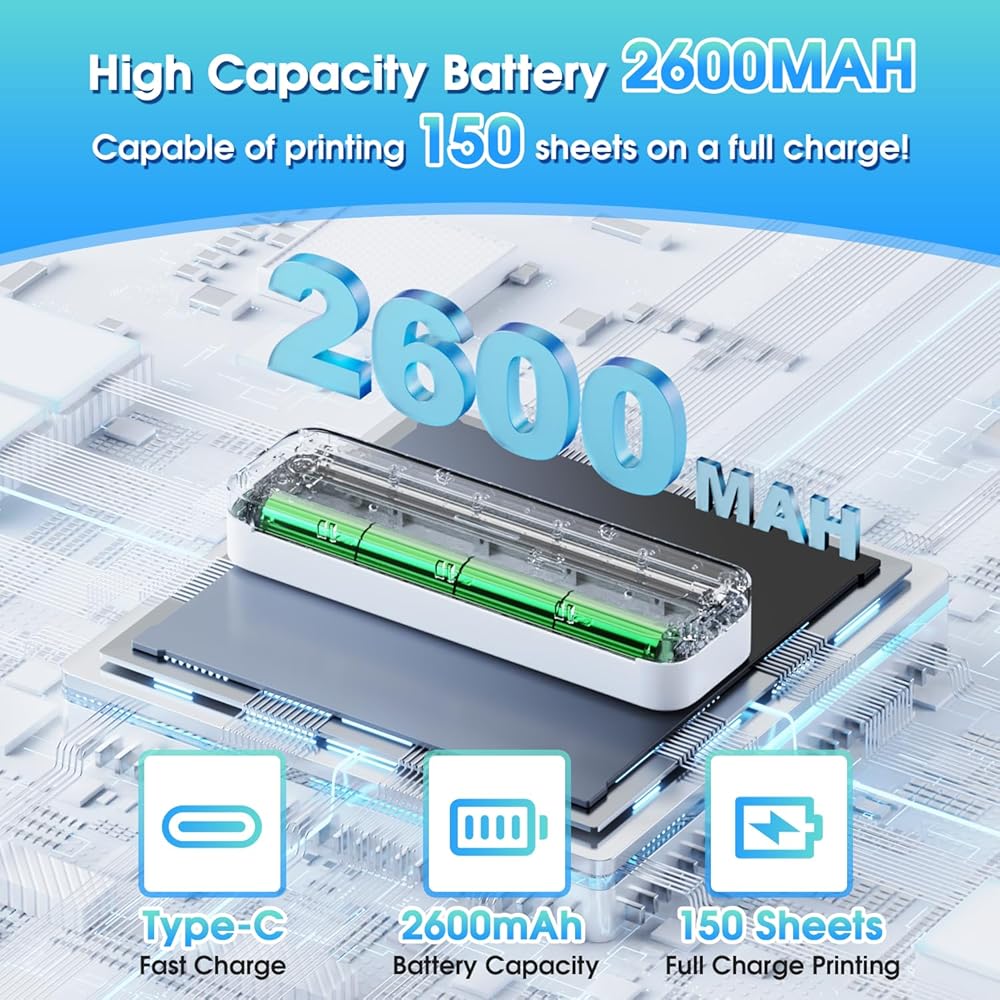 توفير التكاليف والوقت: طابعة ASprink المحمولة بدون حبر مدمجة ومحمولة ولاسلكية! لا يوجد حبر أو أشرطة أو مسحوق حبر باهظ الثمن. البطارية بسعة 2600 مللي أمبير تعمل لمدة ساعتين لتستمر بكفاءة!