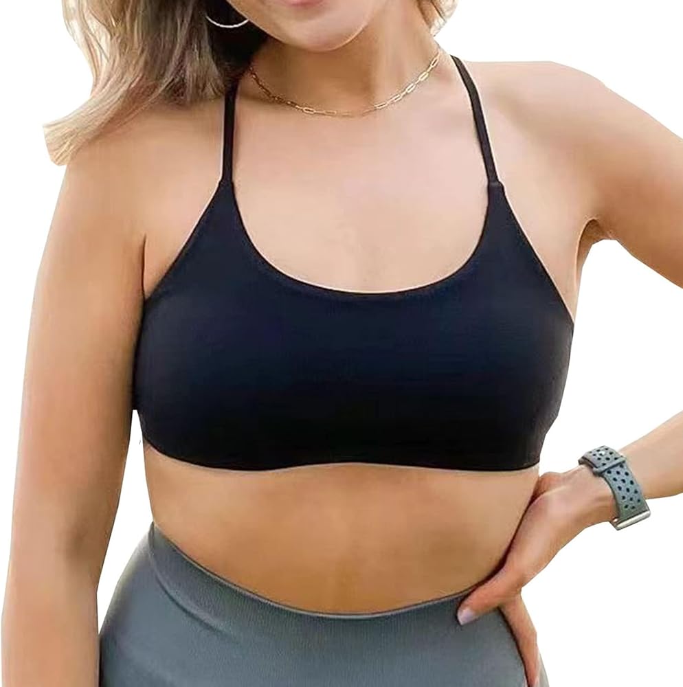 حمالة صدر Aoxjox للسيدات مكونة من قطعتين من حمالات الصدر الرياضية للتمرين واللياقة البدنية بدون ظهر ومبطنة من Ivy منخفضة التأثير وحمالة صدر لليوجا (أسود وأبيض، صغير)