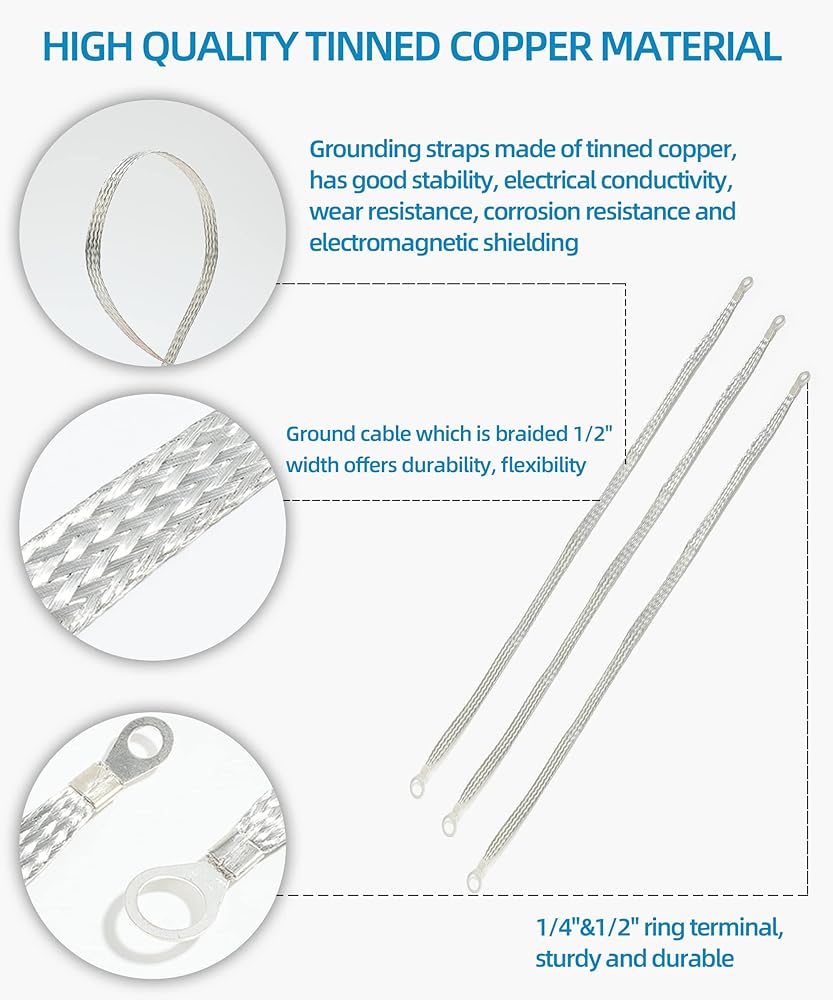 [Weaving Design] The grounding cable is braided and flat, with a width of 1/2 inch, and has durability, flexibility and maximum conductivity.