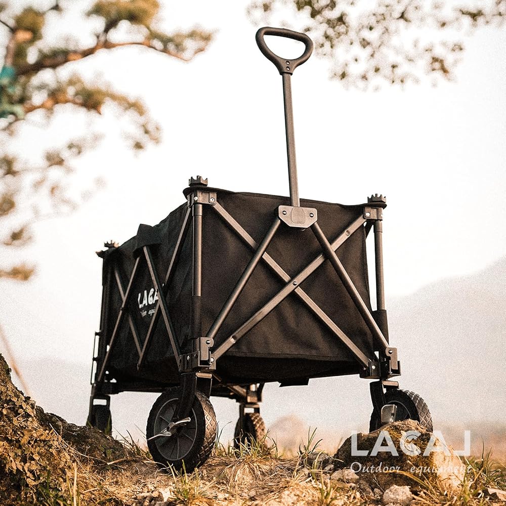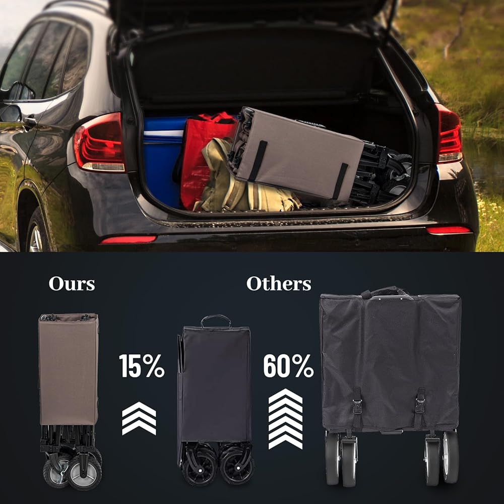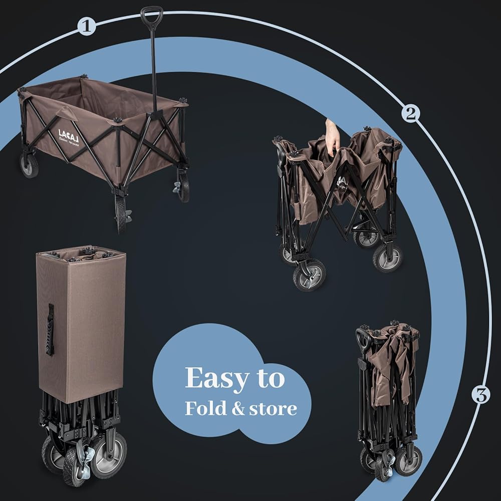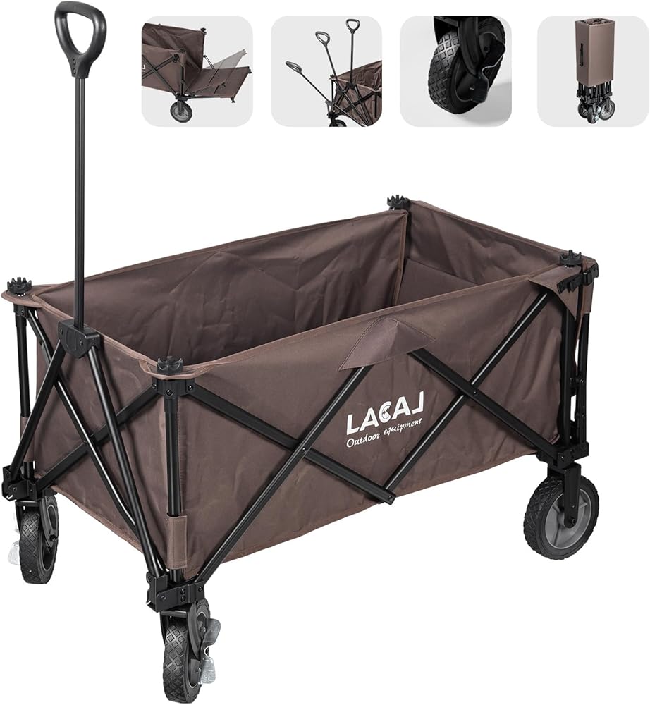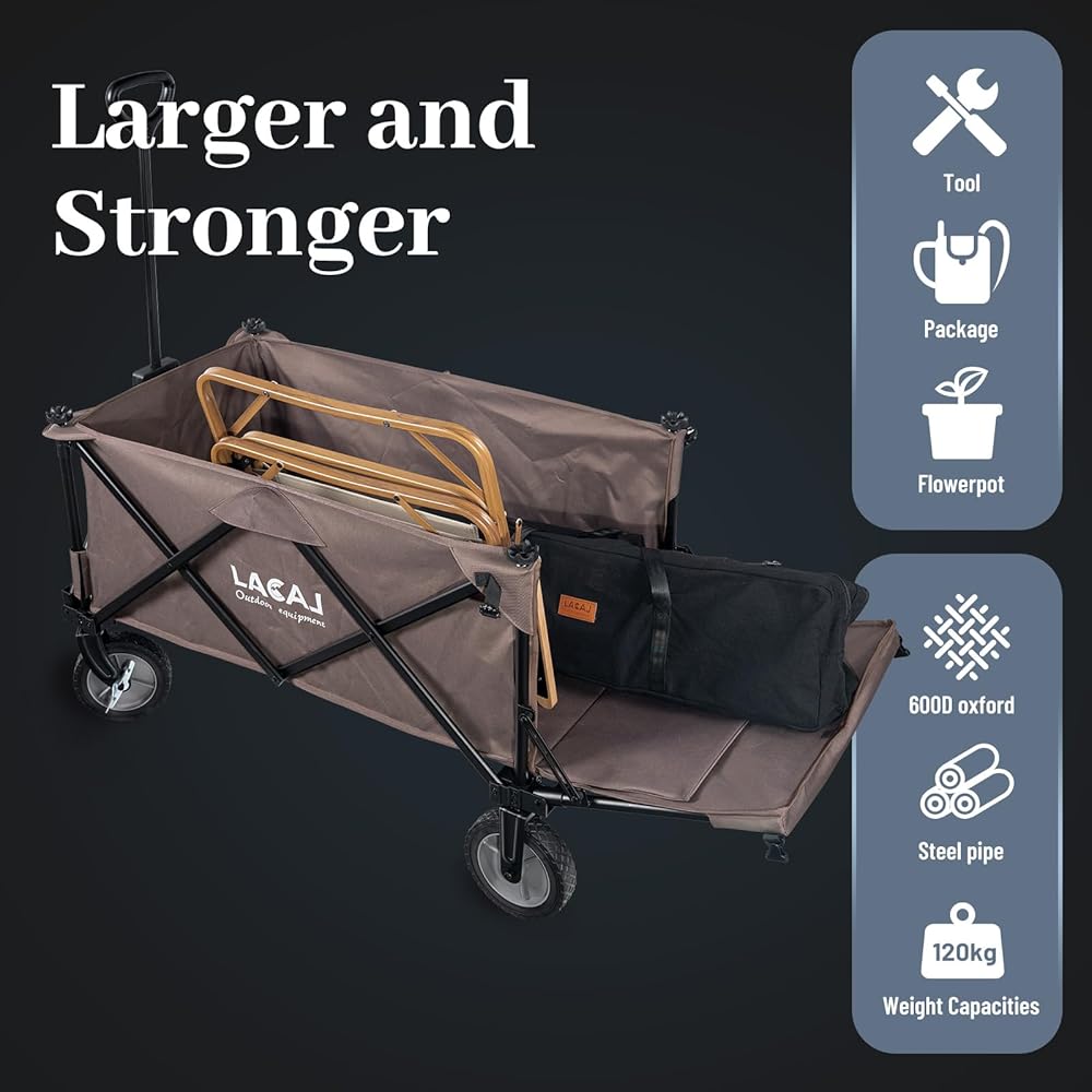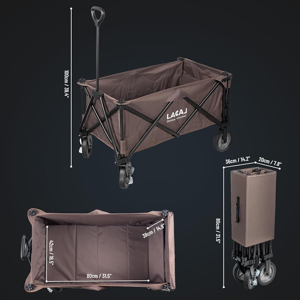 عربة قابلة للطي للاستخدام الخارجي لجميع التضاريس، باب خلفي قابل للطي 4.5 قدم مع سعة إضافية 1.1 قدم، عربة قابلة للطي محمولة بعجلات كبيرة عالمية للحديقة الخارجية والنزهة والتخييم، (مقاس M بني)