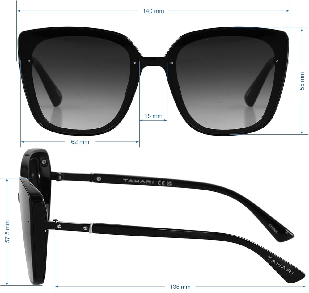 TAHARI DEFINES MODERN SOPHISTICATION: Define your style with these modern 62-millimeter wide TAHARI women's cat eye sunglasses with 100% uv protection year-round. Timeless Elegant Gifts for Women.