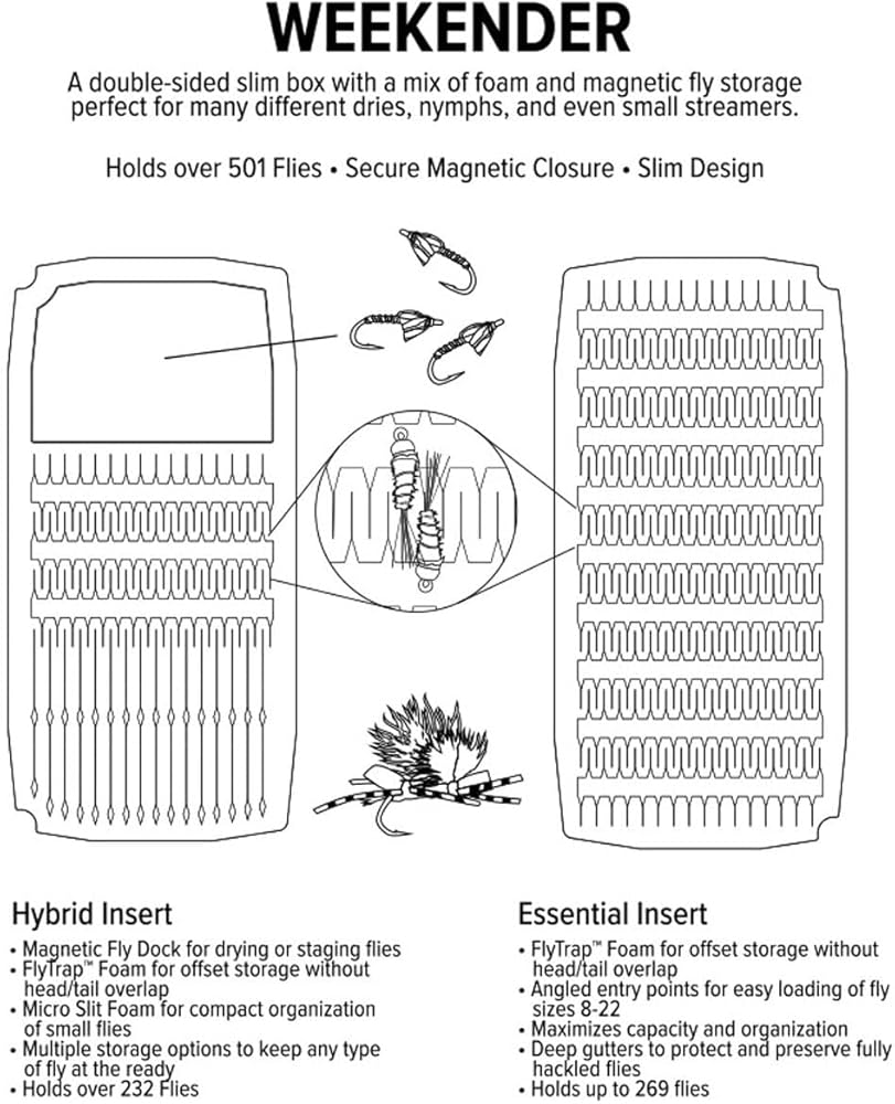 The Umpqua UPG Foam Weekender Fly Box is a double-sided slim box with a mix of foam and magnetic fly storage perfect for many different dries, nymphs, and even small streamers. With tons of capacity and a variety of storage options, this box is as diverse as the flies you loaded up on in preparation for the big trip.