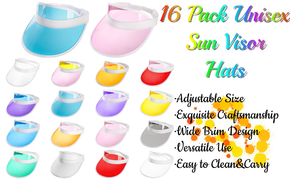 16 عبوة من قبعات واقية من الشمس، قبعة بلاستيكية بلون الحلوى للجنسين، قبعة سياحية شفافة للحماية، قبعة جولف للشاطئ قابلة للتعديل للحماية من الشمس، للنساء والرجال، والأنشطة الرياضية الخارجية (16 لونًا)