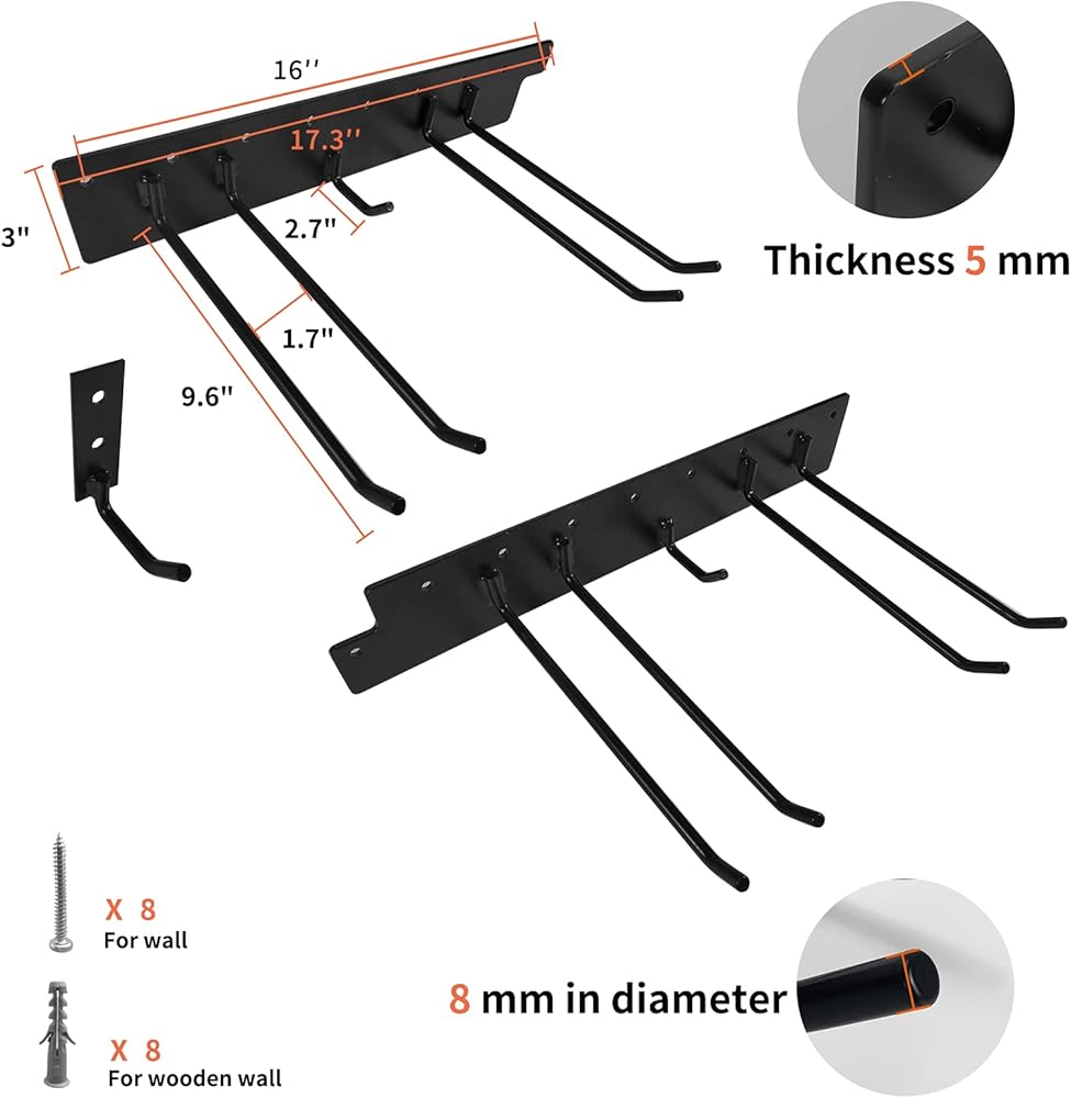 فولاذ عالي التحمل: منظمات التخزين على الحائط في المرآب الخاصة بنا مثبتة على الحائط مصنوعة بشكل جيد. ويمكن لأرفف حائط الجراج أن تحمل ما يصل إلى 200 رطل تقريبًا، مما يجعلها تحمل أشياء ثقيلة مثل الكراسي وألواح التزلج وعربات الأطفال والمجارف والمشط أو الأدوات الكهربائية وأدوات الحديقة لسنوات.