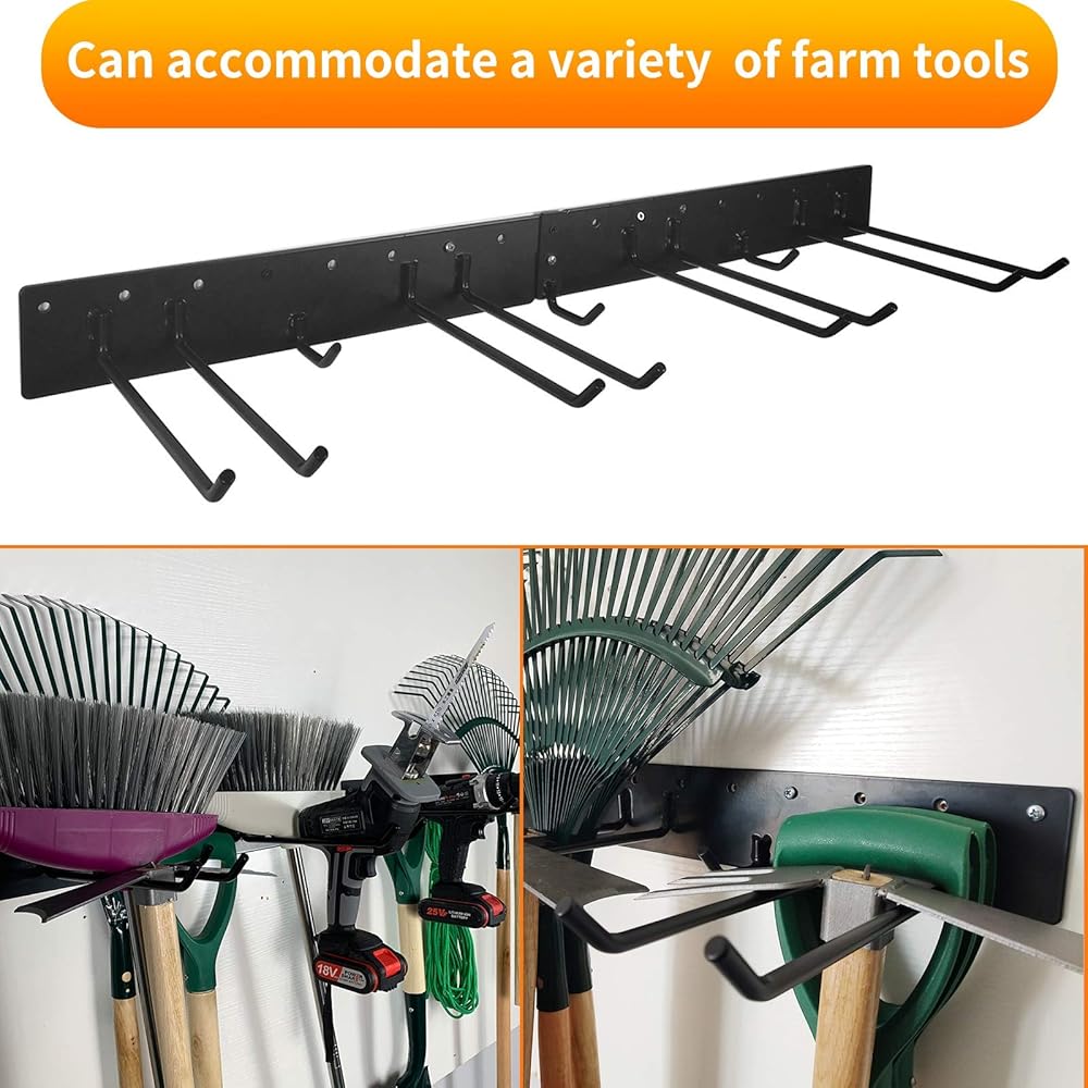 مادة فائقة من أجل المتانة: رف أدوات الحديقة المثبت على الحائط للممسحة والمكنسة مصنوع من الفولاذ المطلي بالمسحوق من أجل المتانة ومقاوم للصدأ والتقطيع والتشقق.