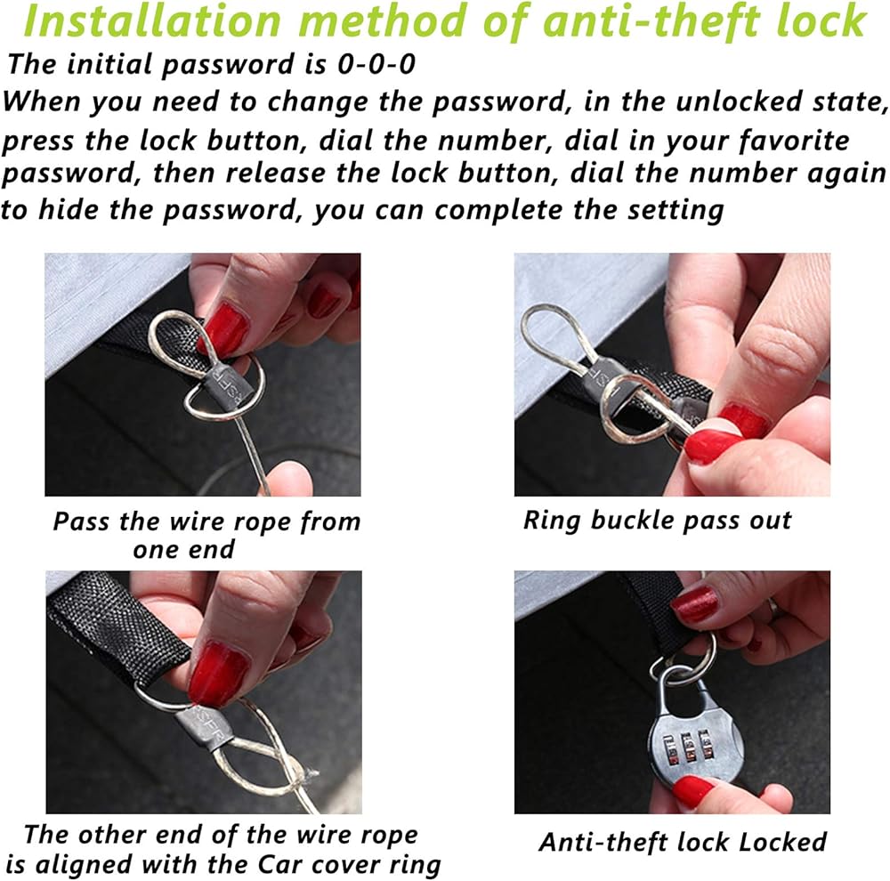 【Lower Strap】The elastic edge of the cover will provide a good fit to your car, and the bottom strap will keep your car in place even on windy days. Delicate double stitching makes the cover even more durable. (An extra-long windproof buckle is provided to strengthen the fixing of the car cover and prevent typhoon weather. Please refer to the main picture for the usage method.)