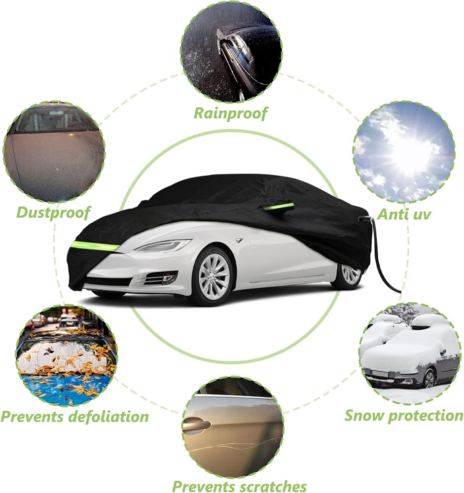 【Weather Factor Protection】Ease Car Cover provides all-round protection for the car from various factors: dust, snow, industrial pollution, bird droppings, leaves, pollen, acid rain, etc. When the wind blows, even if it's just a breeze, it can hit branches, pebbles, etc., which can damage your car.