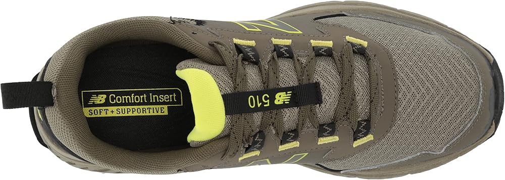 Are you looking for a lightweight, durable and supportive pair of trail running shoes? Then your search ends with the New Balance 510v5. Durability on the outside meets responsive comfort inside for a lightweight running shoe that's as ready as you are for a trail run or whatever else your day has in store. Built with a rugged construction, these New Balance trail shoes offer relentless durability that is suitable for various runs both on- and off-road. The lugged outsole on these comfortable running shoes features AT TREAD technology which provides enhanced traction on the trail or the road, while the lightweight injection-molded EVA foam midsole includes both ABZORB technology for impact absorption and an NB Soft + Supportive Insert for memory comfort that lasts. For added protection, the reinforced Toe Protect tip helps protect your toes from rocks, roots and debris so you can go off-road with confidence.