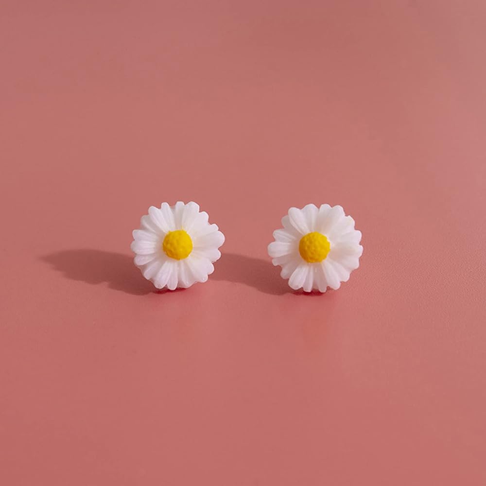 Imitation of simple and delicate chrysanthemum small stud earrings, The petals are white, the middle flower is yellow, looks like a beautiful daisy in full bloom, make you appear more vibrant.