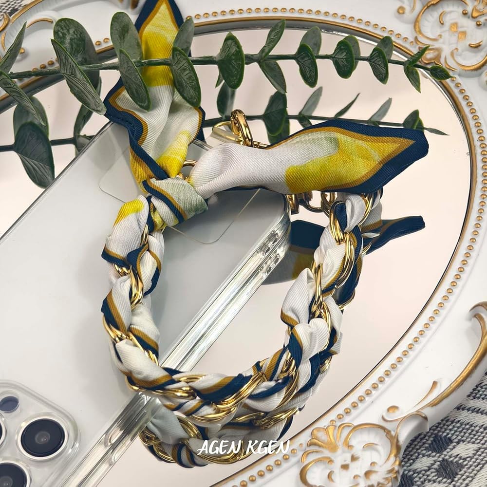 سحر الهاتف الأنيق: حزام الهاتف الرائع يمكن أن يجعل هاتفك مميزًا. مزيج السلسلة المعدنية والوشاح الحريري معًا يقدم جمالًا مختلفًا وفريدًا وكلاسيكيًا للغاية.