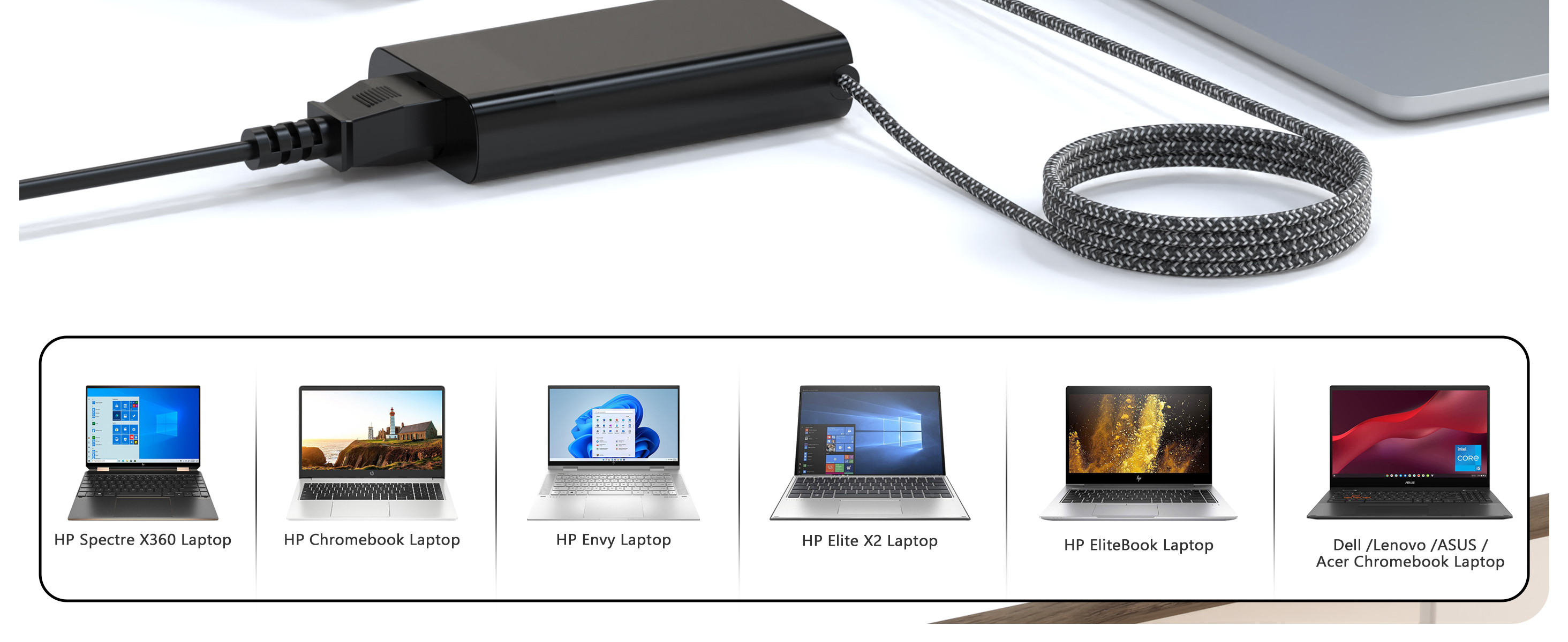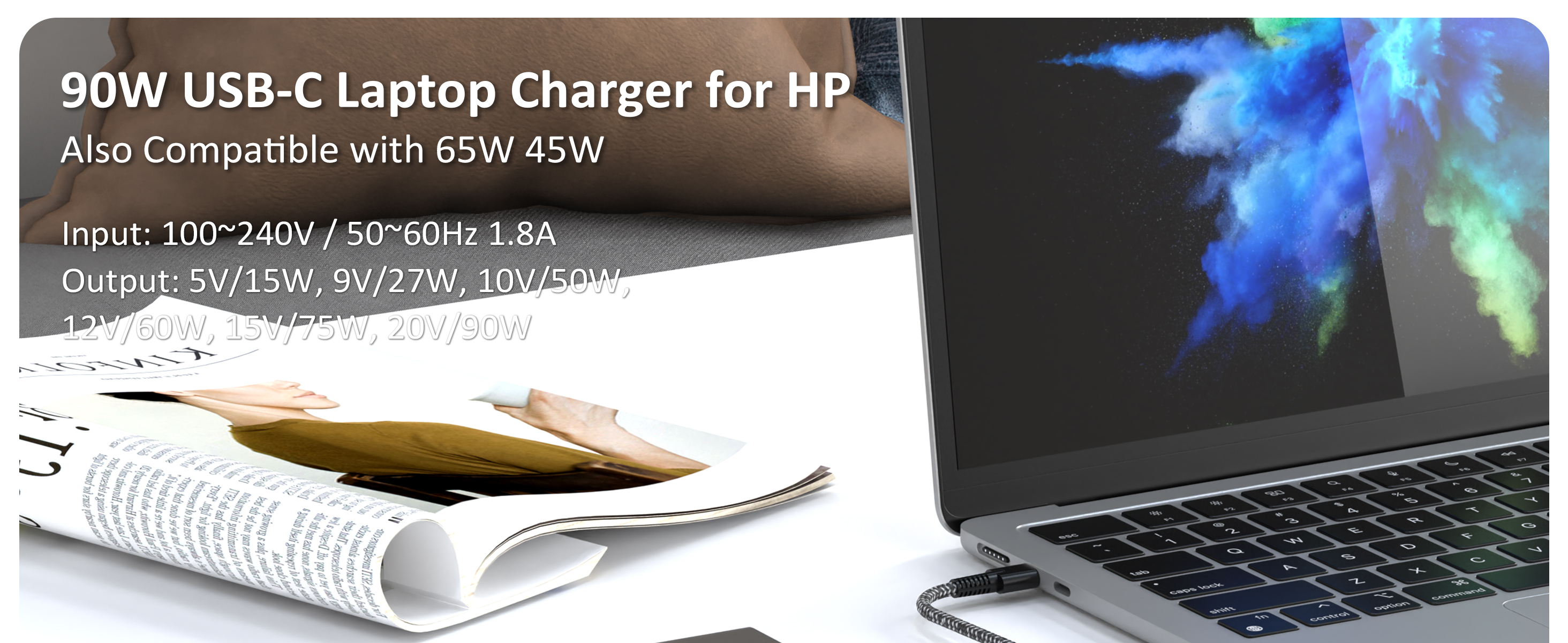 محول طاقة USB-C بقدرة 90 وات يناسب HP Dell Lenovo Acer Asus