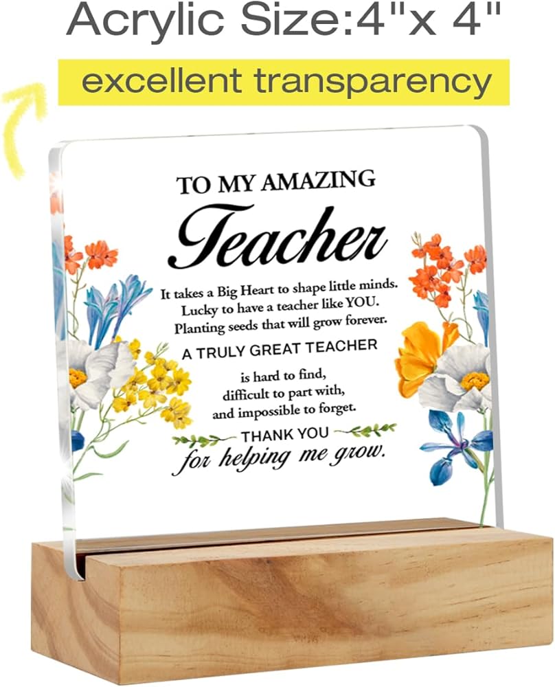 Perfect Size: Acrylic sign is 4 x 4 Inches. Wood stand is 4 x 1.5 inches.