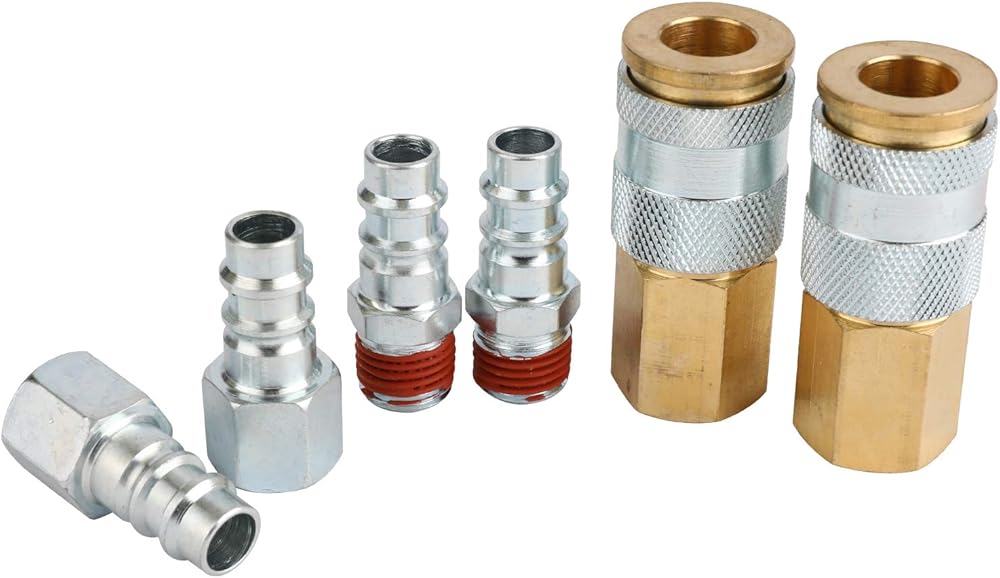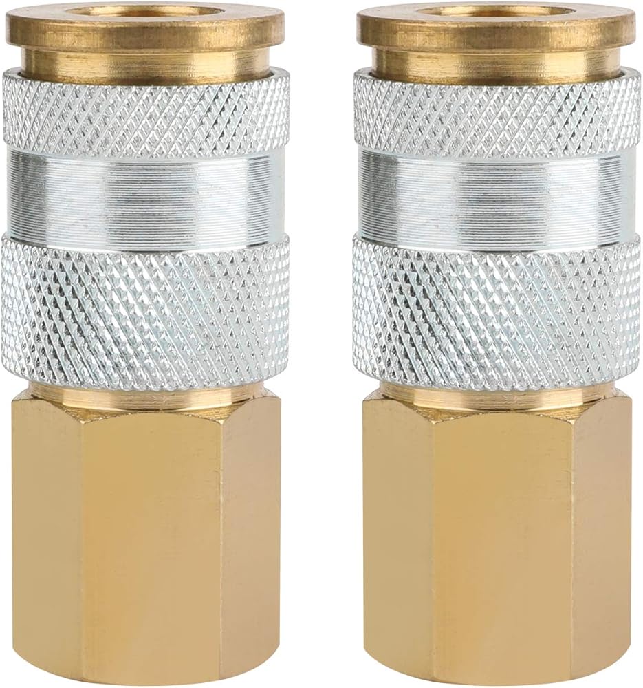 WYNNsky قارنة توصيل الهواء ومجموعة التوصيل، 2-PC 1/4''FNPT HF نوع مقرنة الهواء، جسم نحاسي مع غلاف فولاذي، 2-PC HF 1/4''FNPT Plug و2-PC 1/4''MNPT Plug مع مانع التسرب