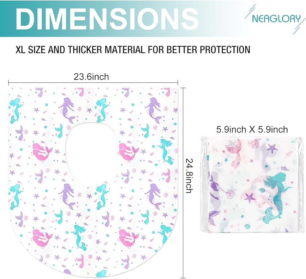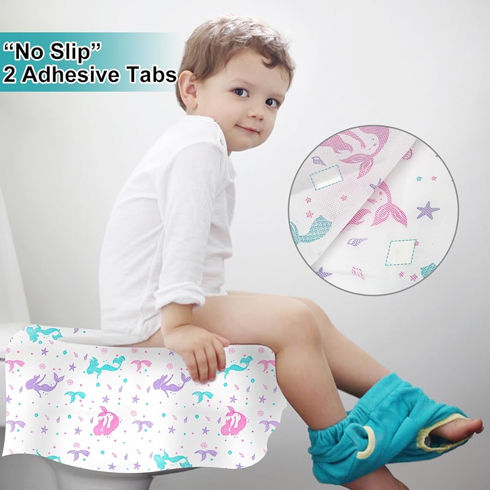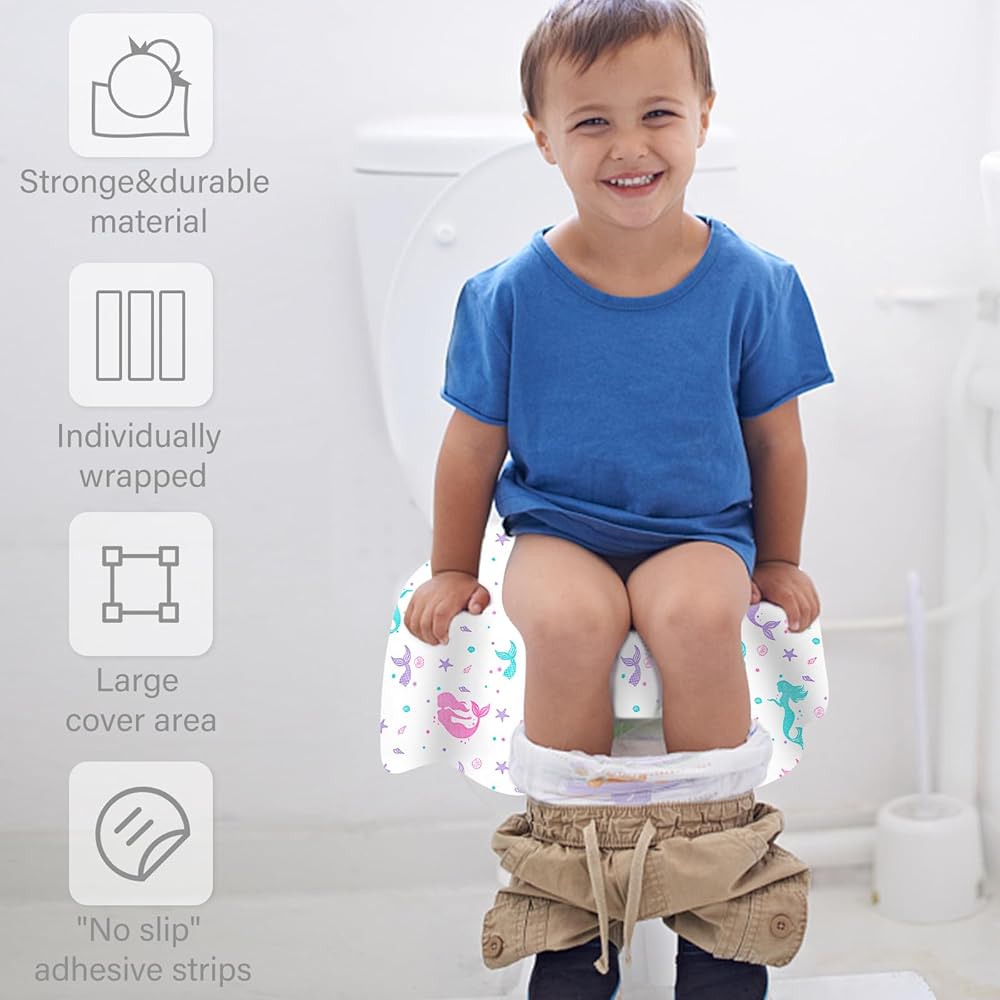 Do not worry when your kids need to use a public restroom. 24.8 * 23.6 inch extra large disposable toilet seat covers, so nice and huge to cover the entire toilet seat, sides, and part of the front of the toilet, no more worrying about your kids touching the seat, Ideal for adults too!