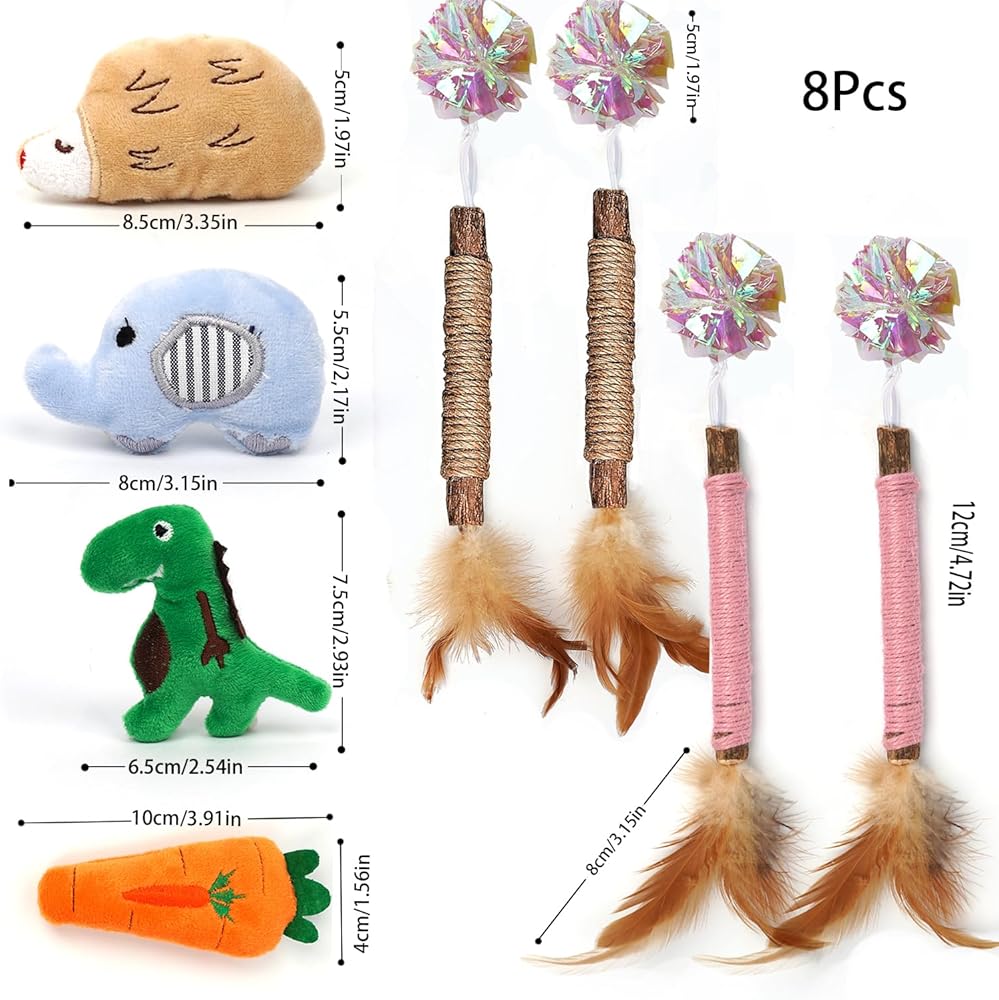 ألعاب القطط، لعبة القطط التفاعلية للقطط الداخلية، ألعاب النعناع البري الناعمة والمتينة ذات الصوت المجعد، لعبة مضغ التسنين للقطط المملوءة بالنعناع البري (حزمة 8)