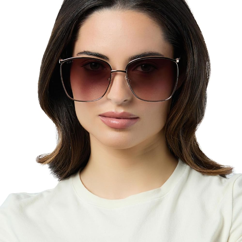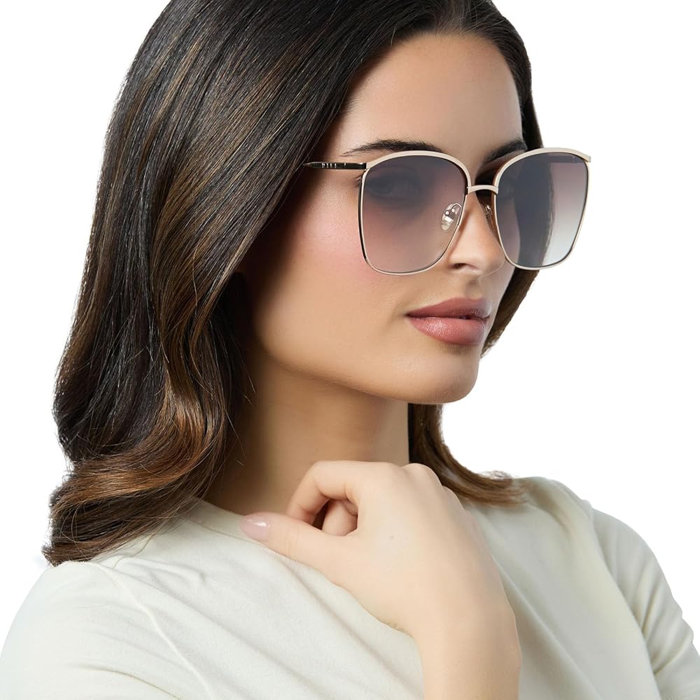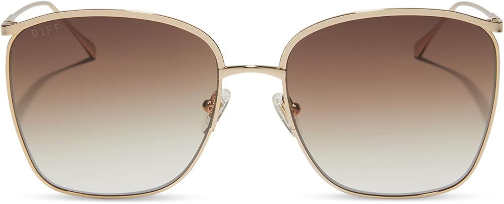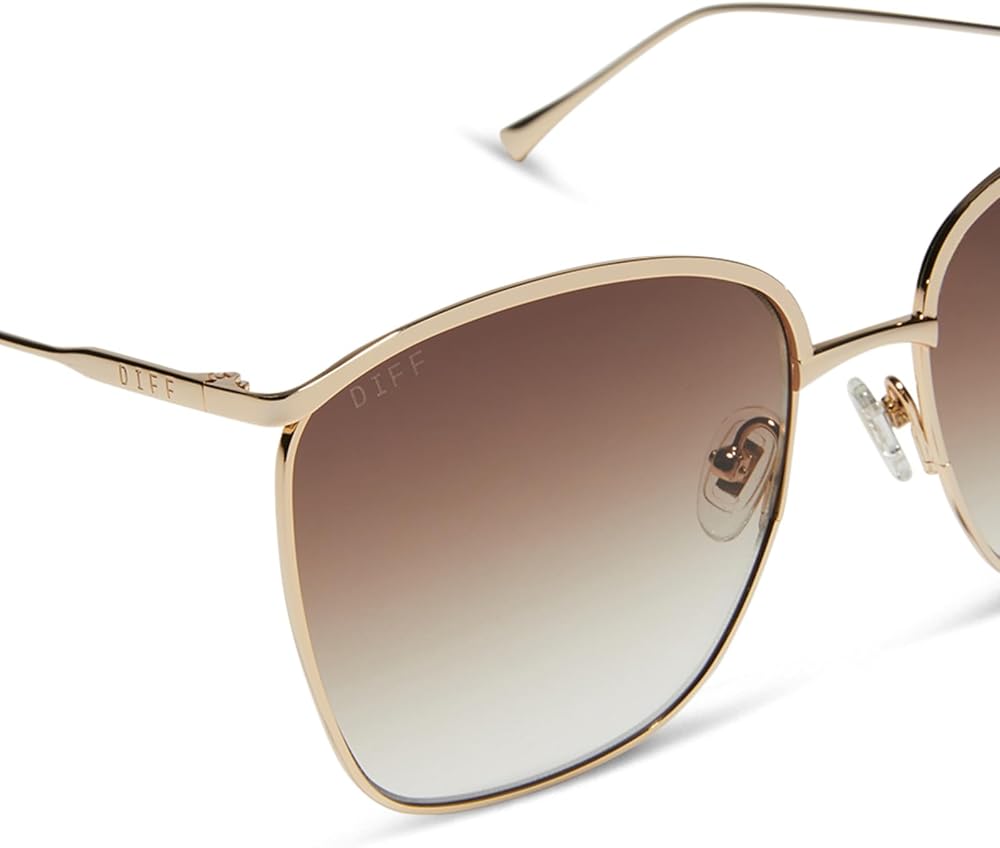 DIFF Vittoria Square Designer النظارات الشمسية للنساء حماية مستقطبة من الأشعة فوق البنفسجية 400، ذهبي + بني متدرج