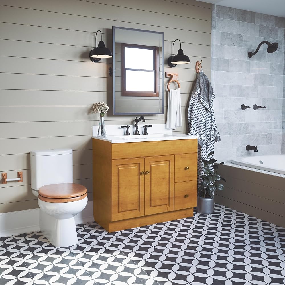 The Design House 561241 Dalton Round Toilet Seat adds a relaxed country style to your bathroom. This toilet seat is made of stunning honey oak wood, with smooth lines and a traditional design. Measuring 16.9-inches by 14.6-inches, this seat adds a warm and comforting aesthetic to any bathroom. The Dalton Collection features a matching robe hook, towel bar and towel ring for a complete bathroom set to enjoy for years to come. A standard mount and exposed screws are included for easy installation. The Design House 561241 Dalton Round Toilet Seat comes with a 1-year limited warranty that protects against defects in materials and workmanship. Design House offers products in multiple home decor categories including lighting, ceiling fans, hardware and plumbing products. With years of hands-on experience, Design House understands every aspect of the home decor industry, and devotes itself to providing quality products across the home decor spectrum. Providing value to their customers, Design House uses industry leading merchandising solutions and innovative programs. Design House is committed to providing high quality products for your home improvement projects.