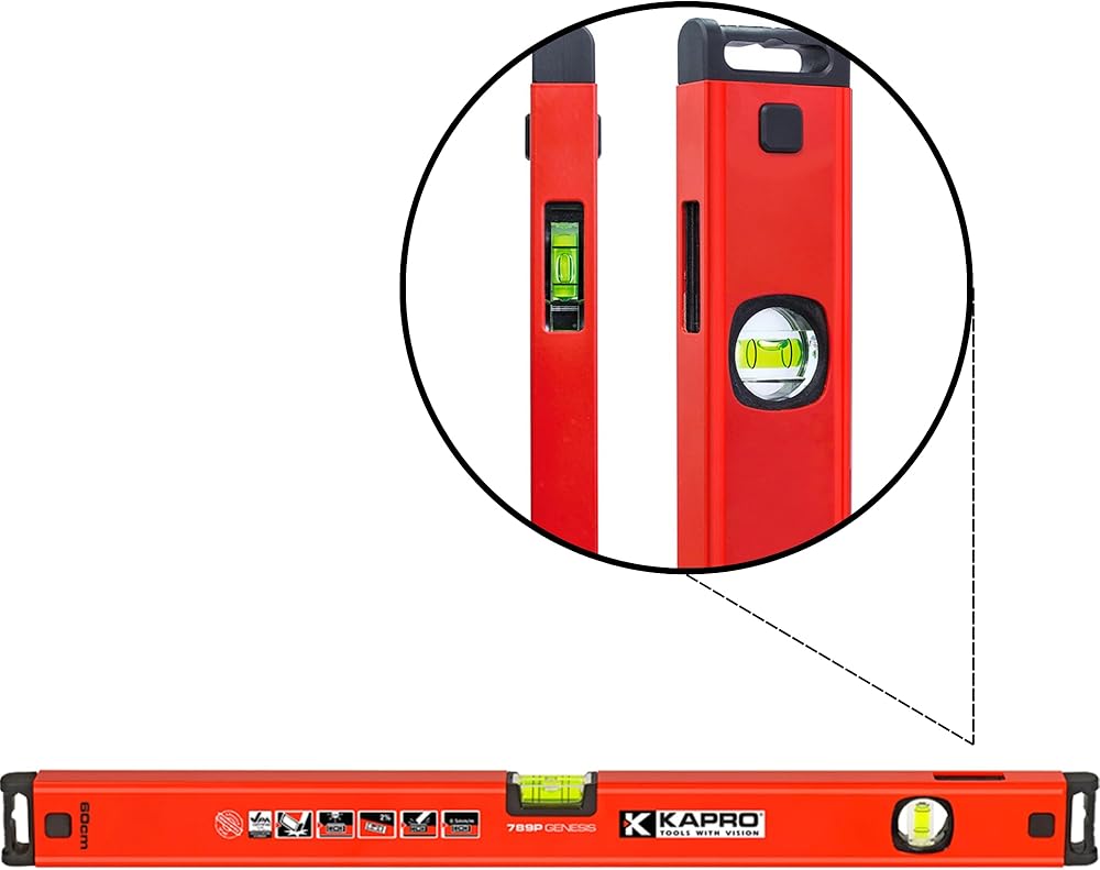 دقيق - يتميز مستوى صندوق التكوين Kapro 781 ذو الجودة الاحترافية بقوارير أكريليك صلبة معتمدة من VPA ومعايرتها يدويًا ومقاومة للكسر مع علامات مائلة بدرجتين وقنينة عمودية مزدوجة الرؤية من Plumb Site لمساعدتك على المستوى والقياس بسهولة.