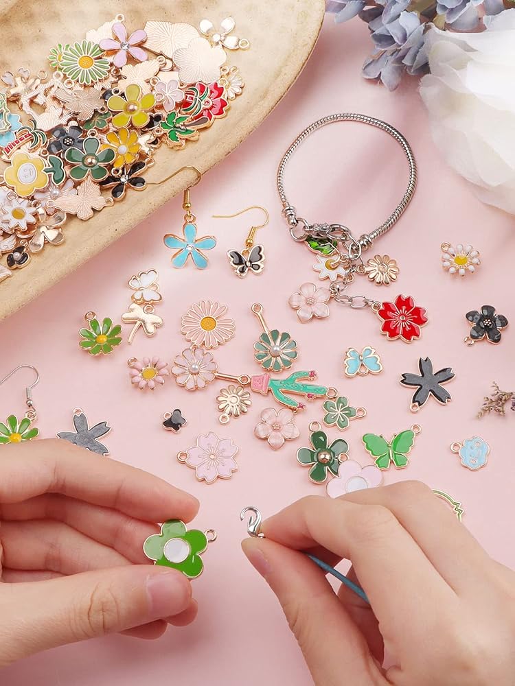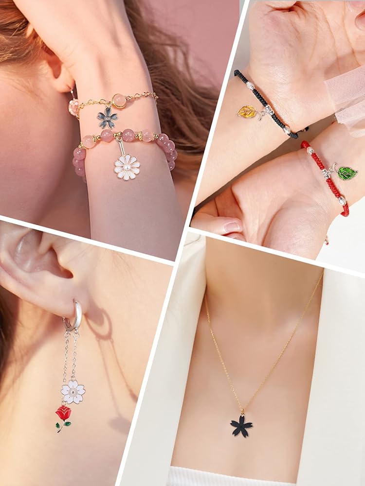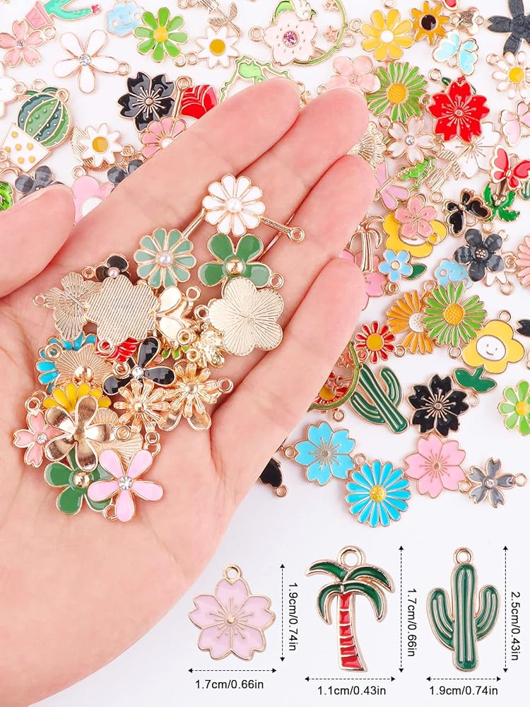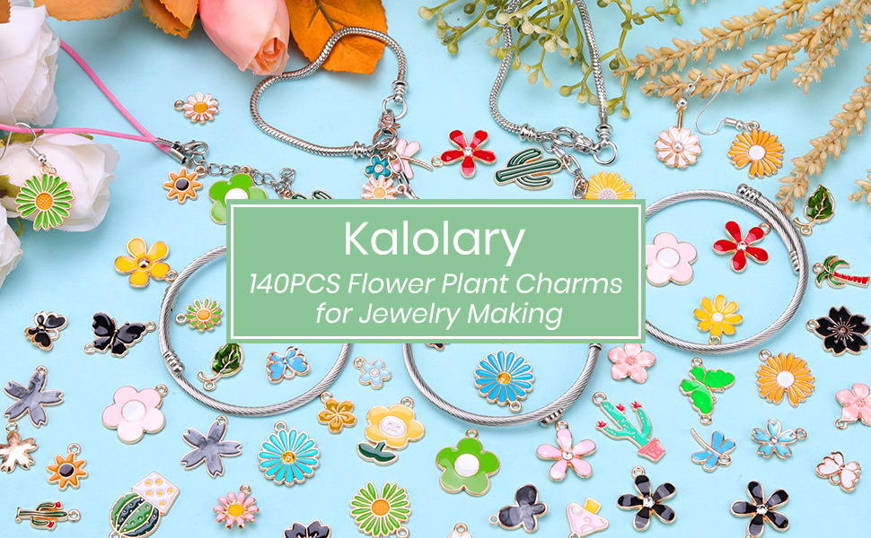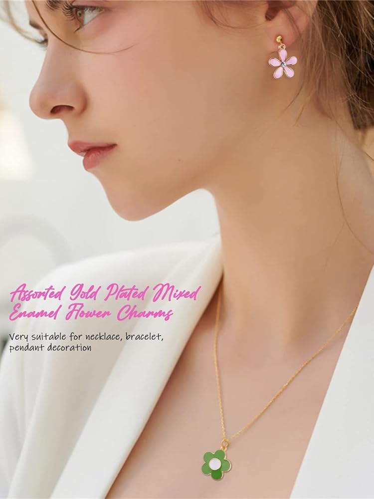 140 قطعة من Kalolary زهرة المينا الربيعية لصنع المجوهرات هدية عيد الفصح زهرة الصيف تحت عنوان المعلقات سوار مطلي بالذهب سحر للأقراط قلادة سوار النبات المعلقات صناعة يدوية
