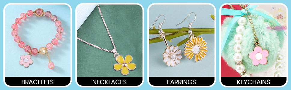 🌵 تستخدم على نطاق واسع: حليات مجوهرات Kalolary Daisy مناسبة للقلائد والأساور والعلامات المرجعية وسلاسل المفاتيح والأقراط ومعلقات الهاتف المحمول ومعلقات الحقيبة المدرسية وتزيين الغرفة. كما يمكن استخدامها لصنع هدية ربيع جميلة لأصدقائك أو أفراد عائلتك.